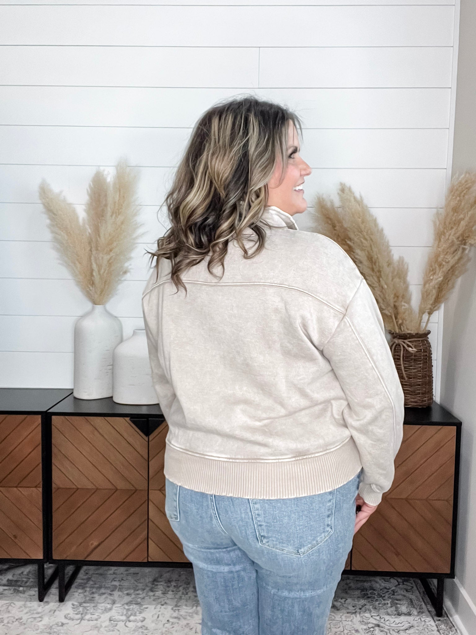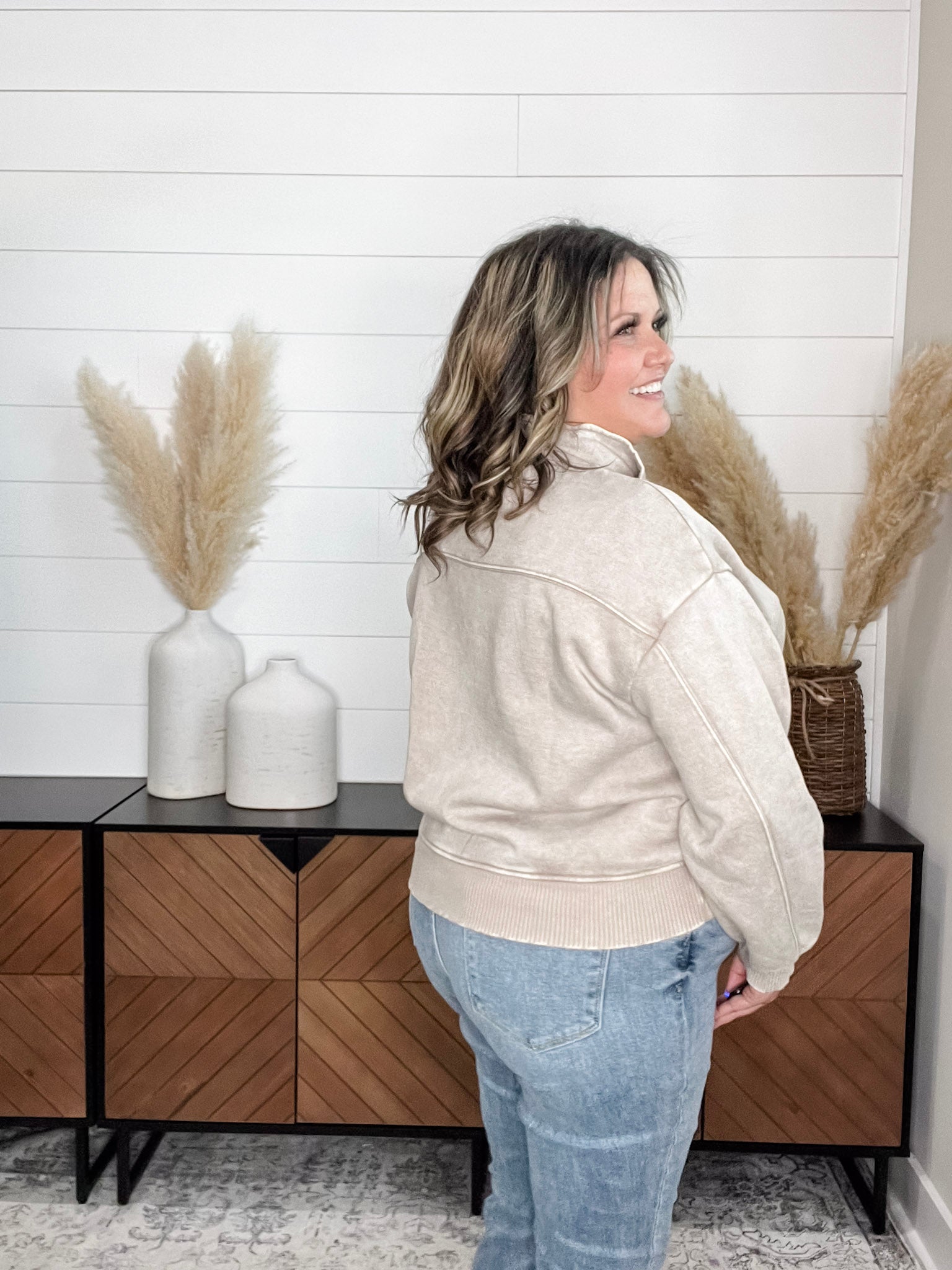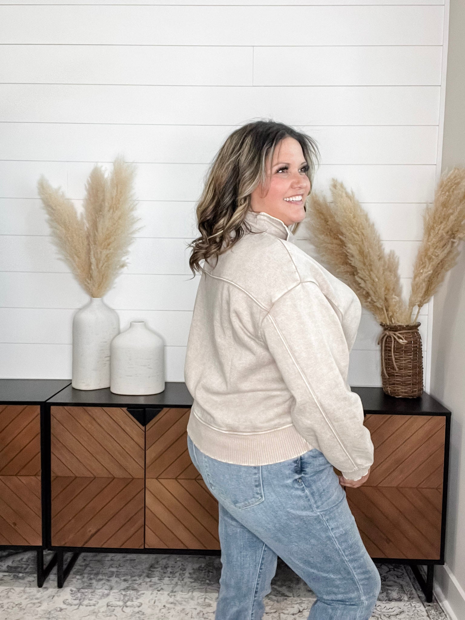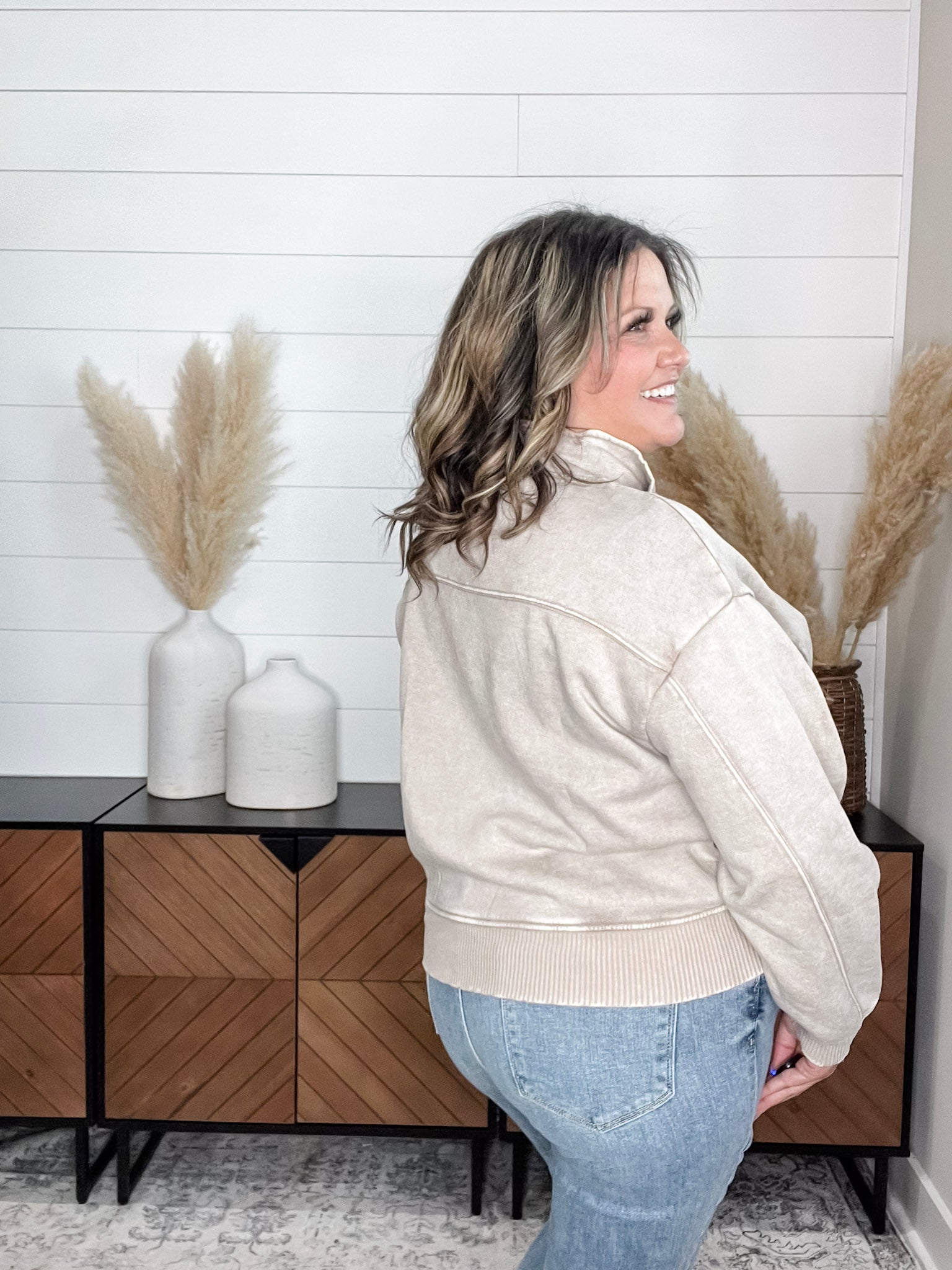 "Stone Cold" Acid Wash Cropped 1/2 Zip (Ash Mocha)