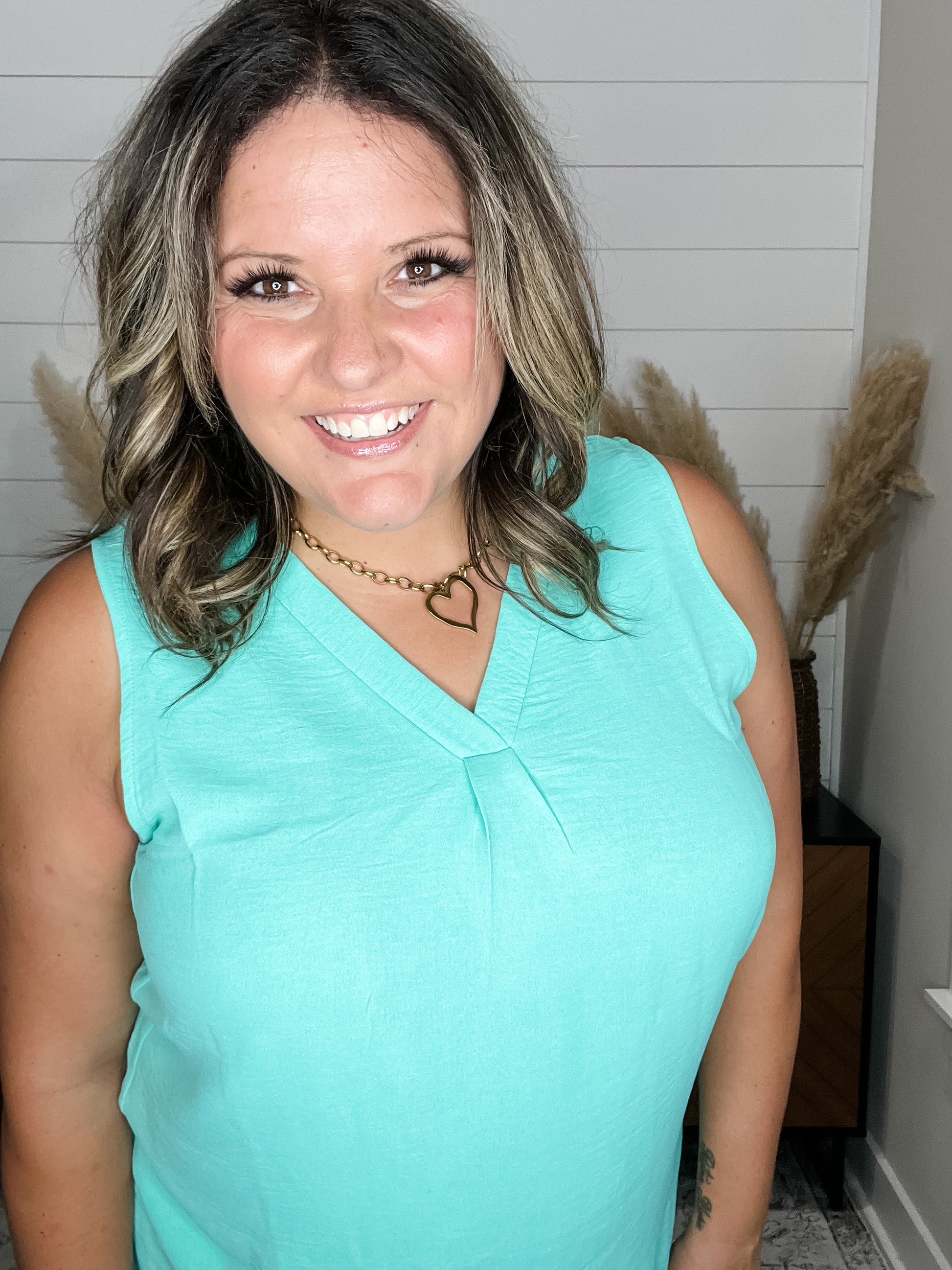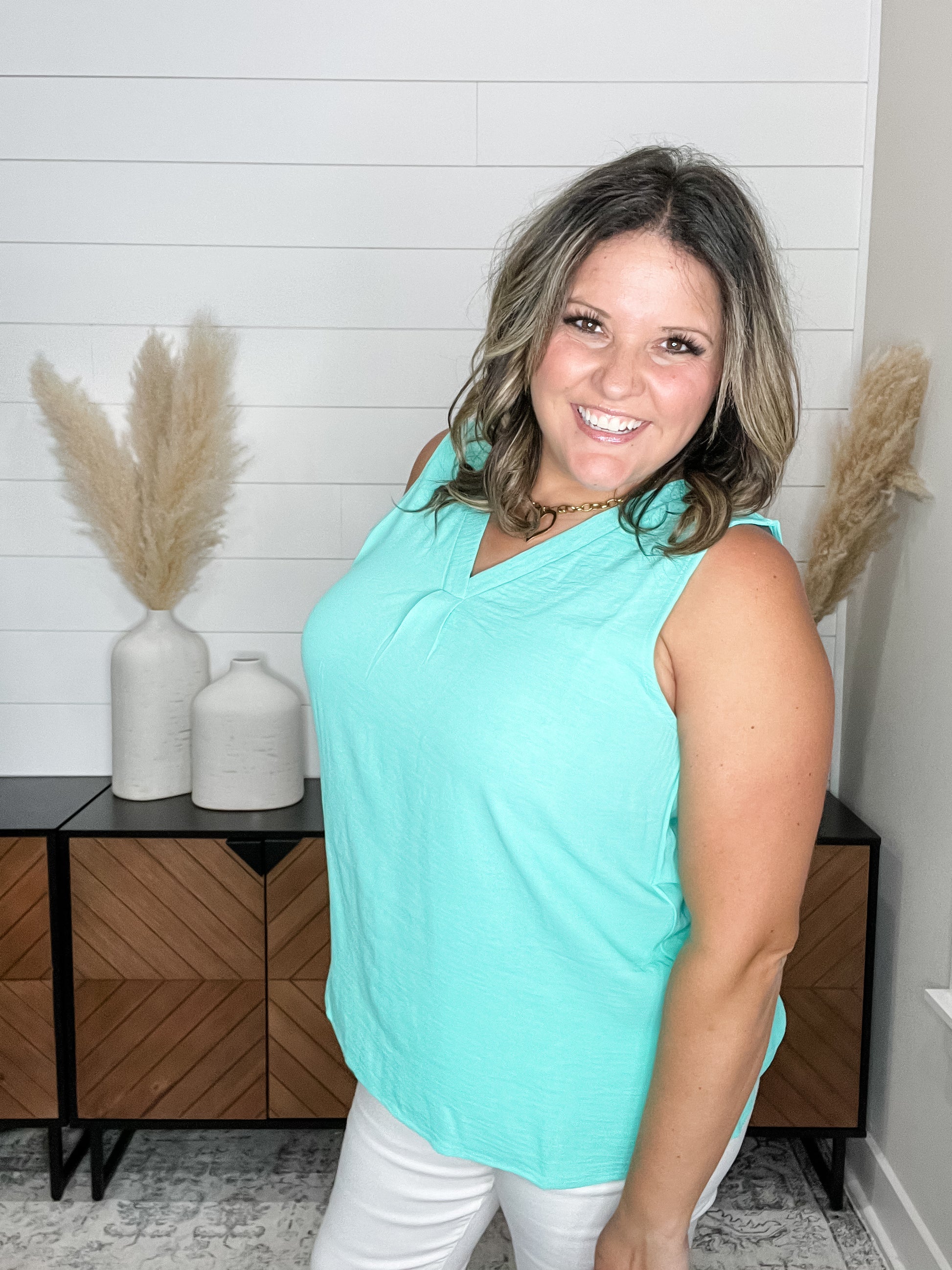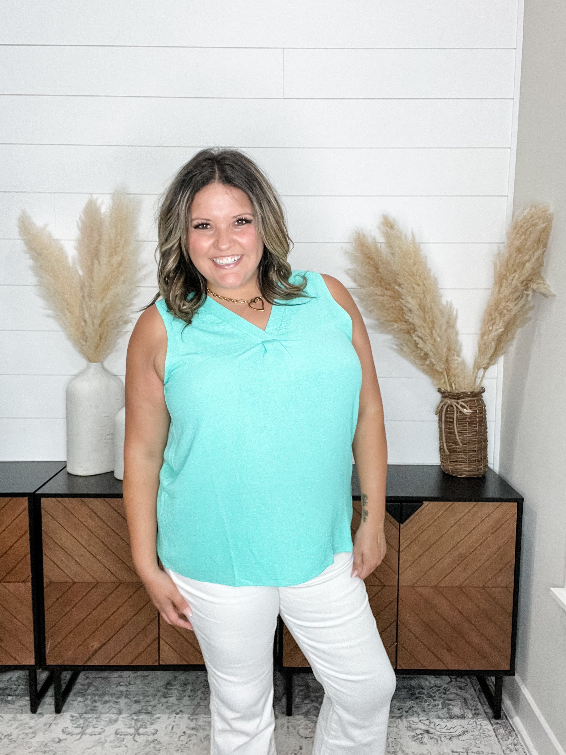 "Swanton" Deep V Tank with Front Pleat (Aqua Mint)