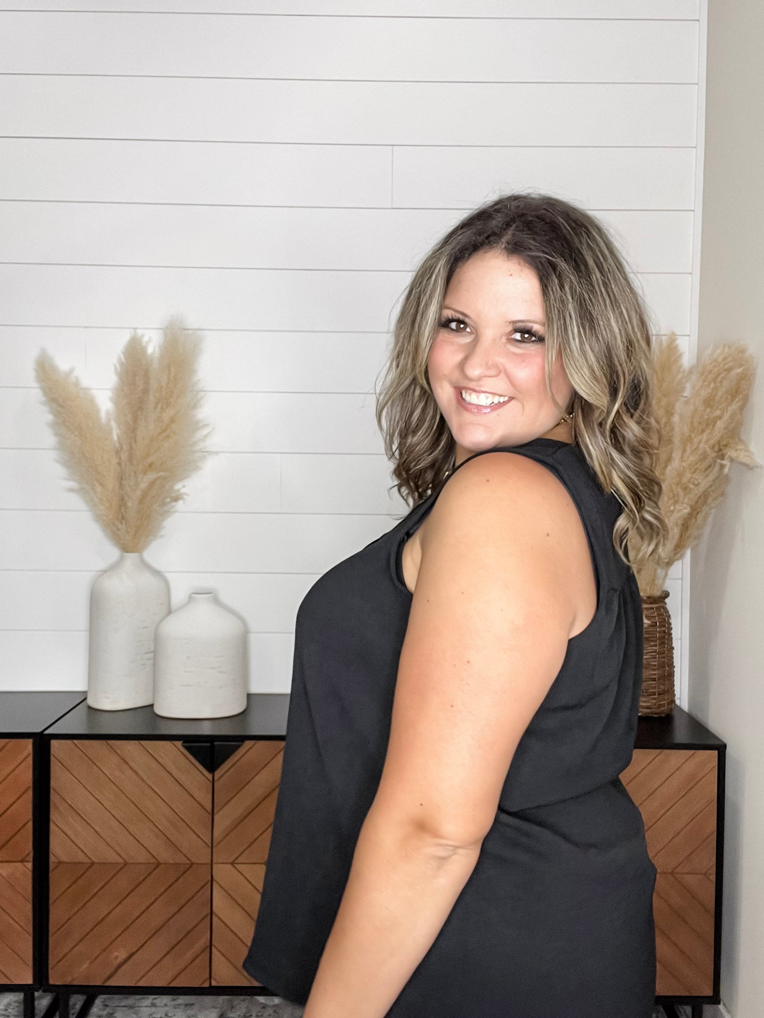 "Swanton" Deep V Tank with Front Pleat (Black)