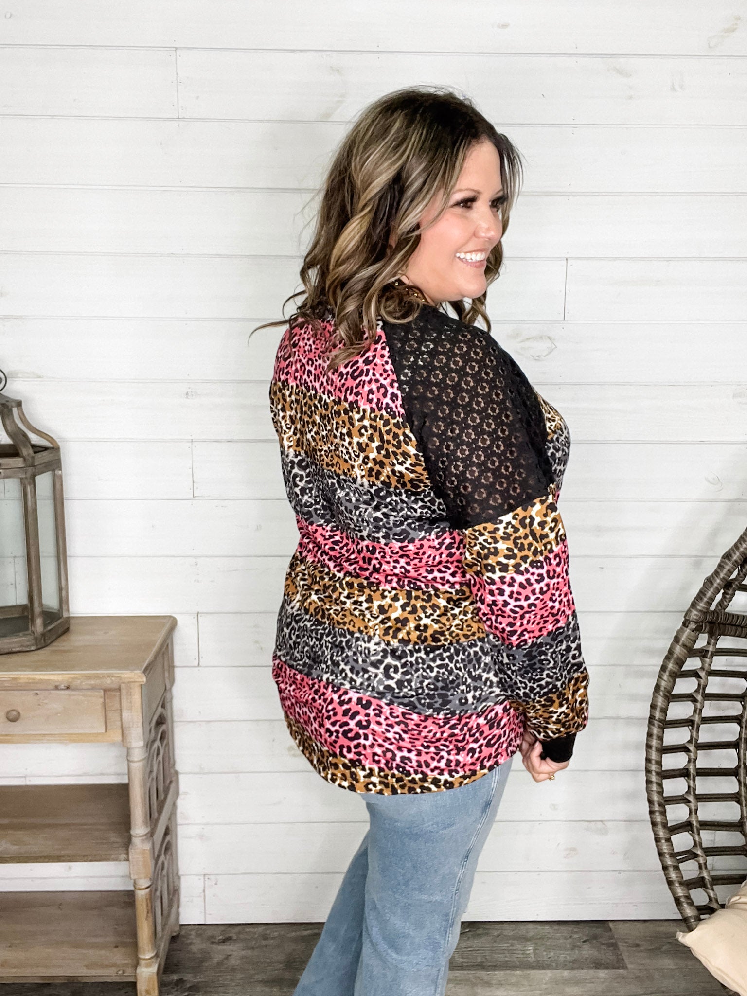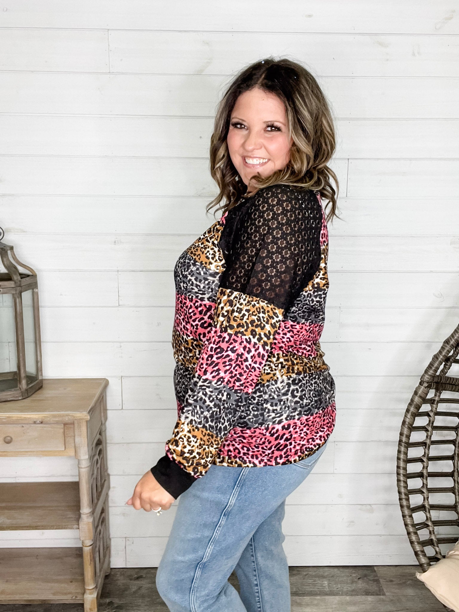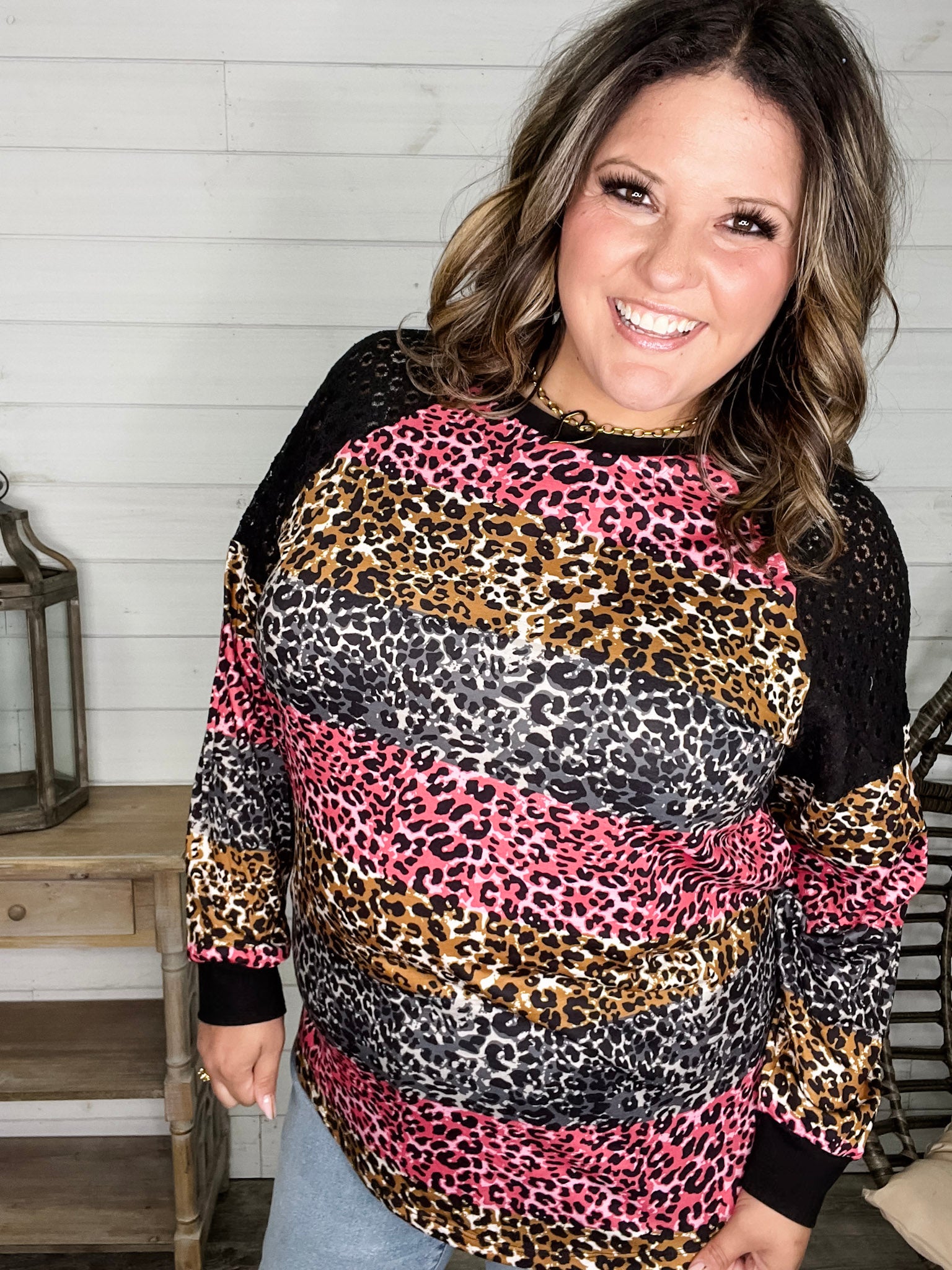 "Take It On" Animal Print Long Sleeve with Lace Shoulder Detail