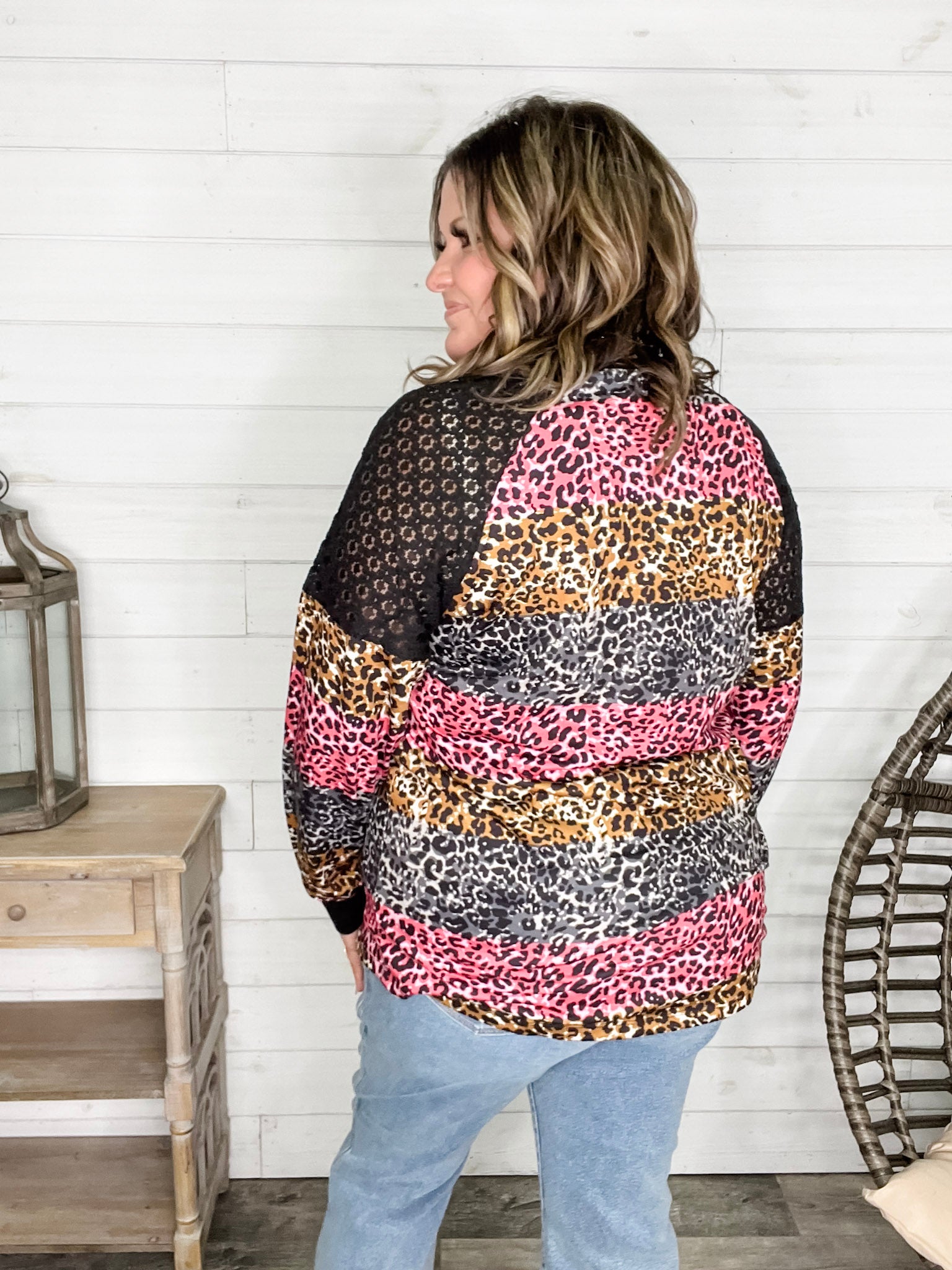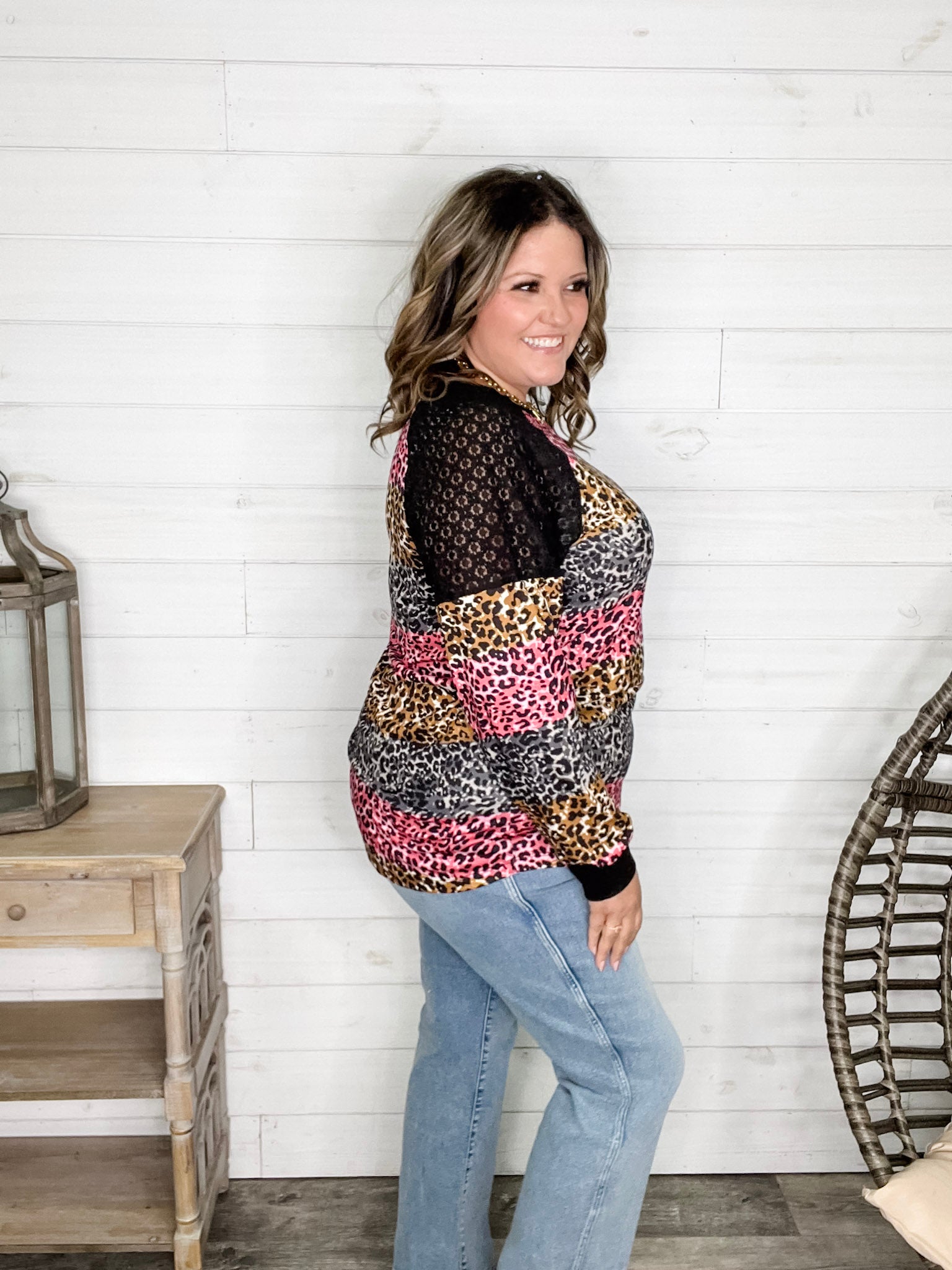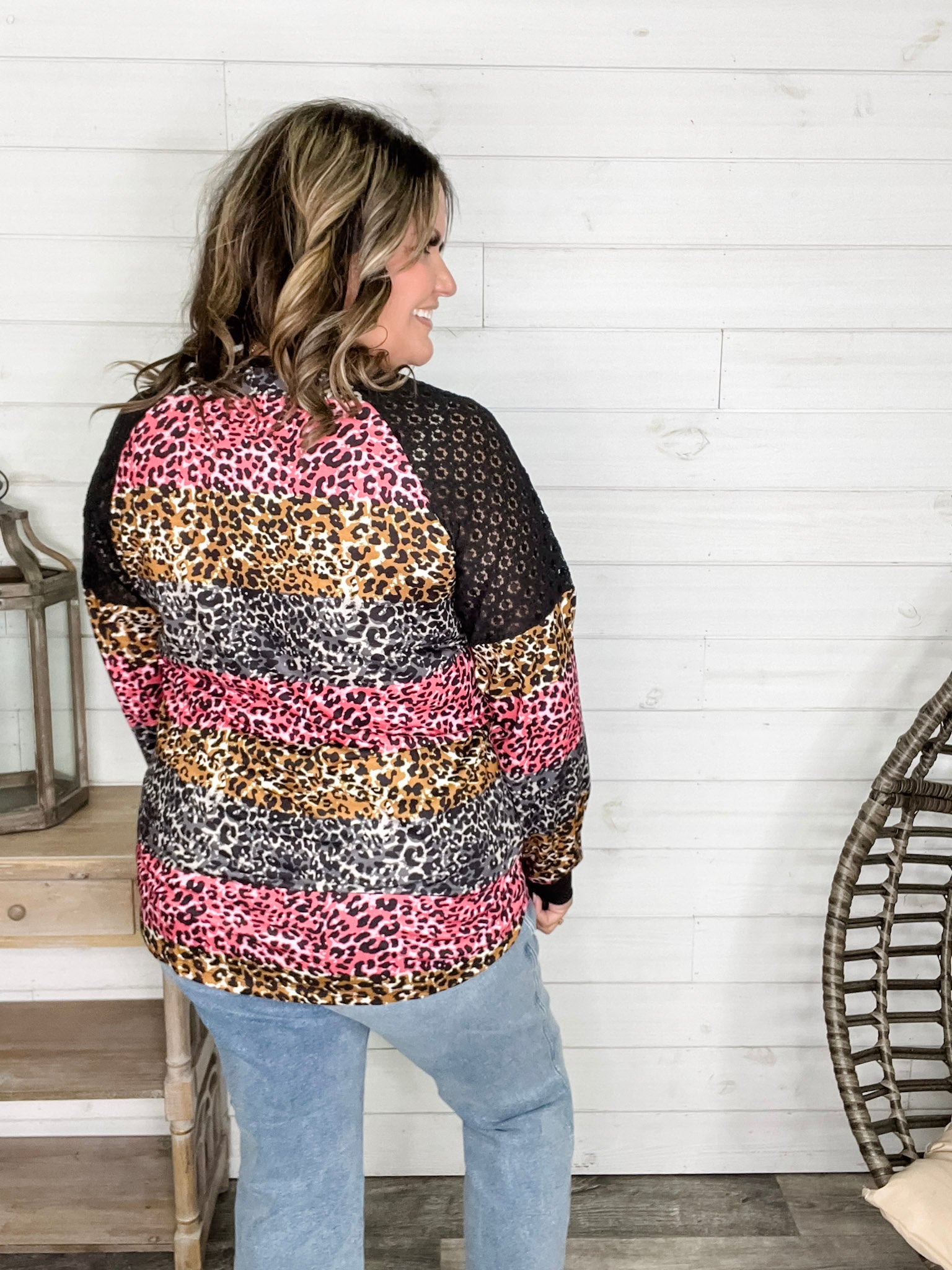"Take It On" Animal Print Long Sleeve with Lace Shoulder Detail