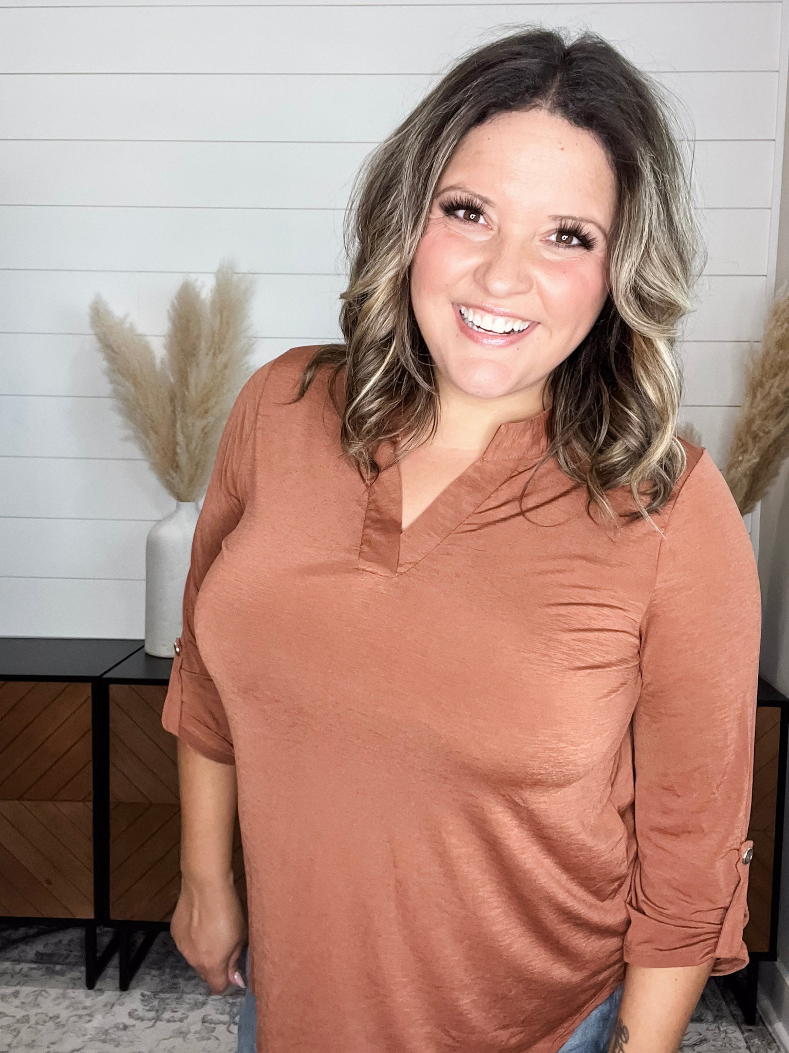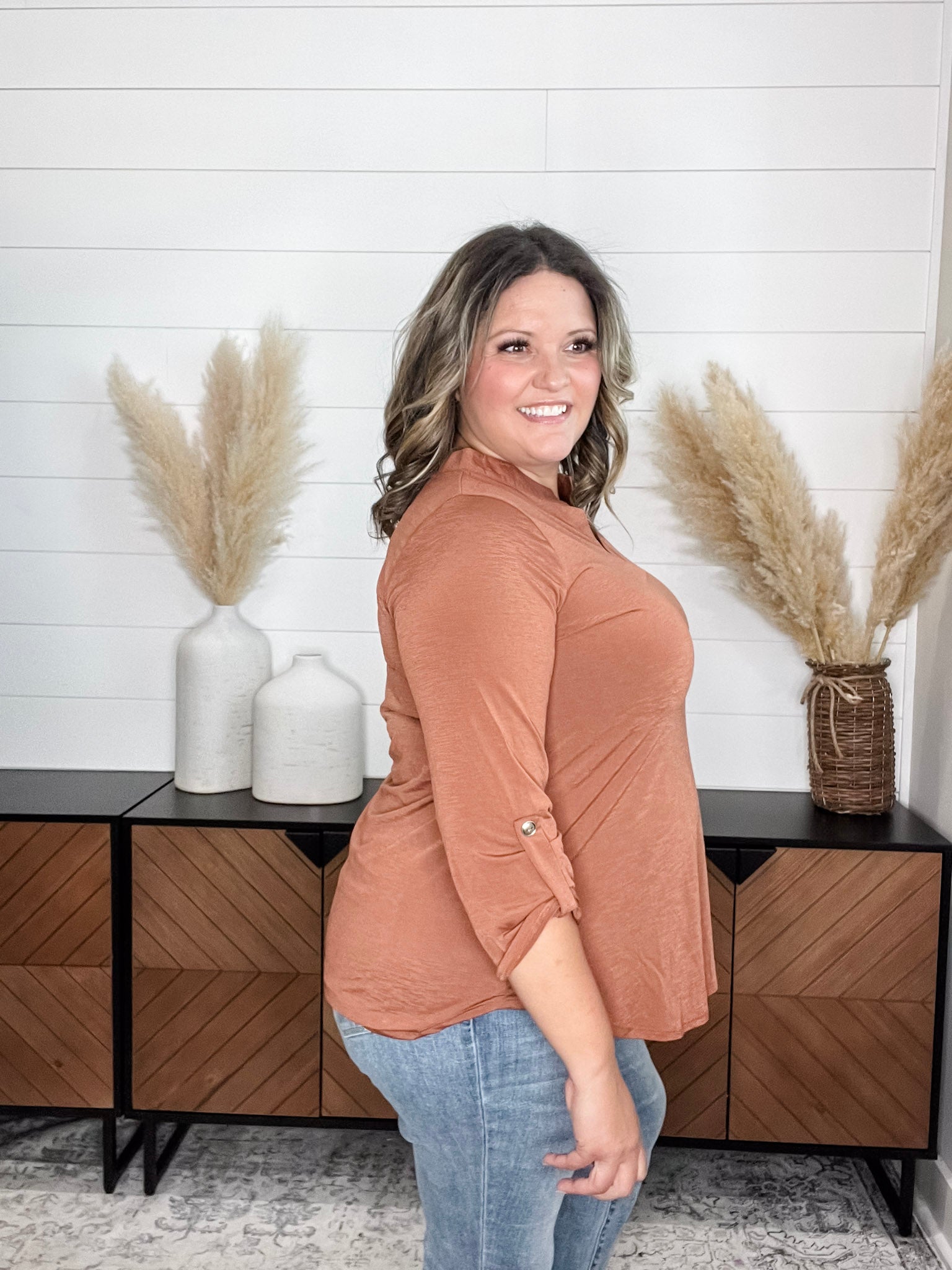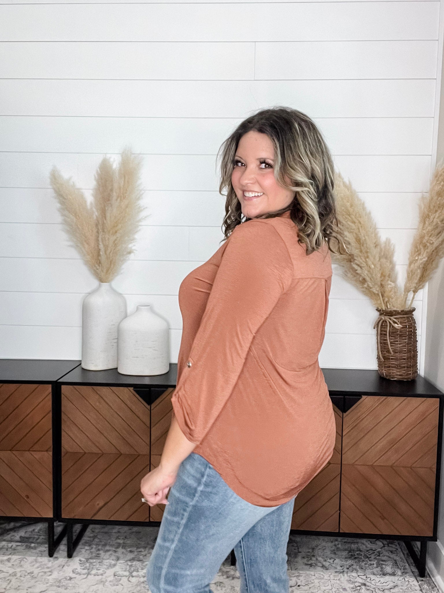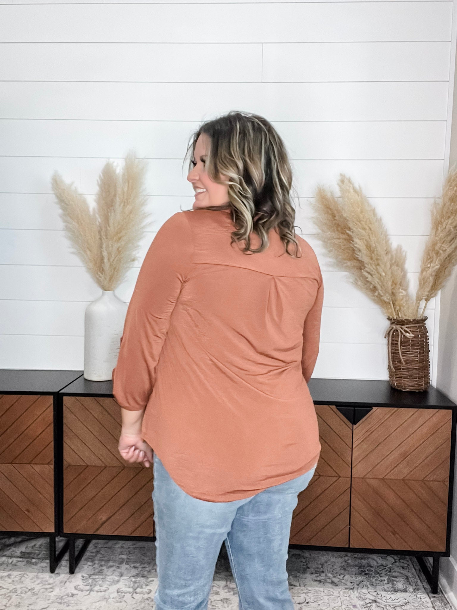 "Timeline" 3/4 Sleeve Split Neck (Rust)