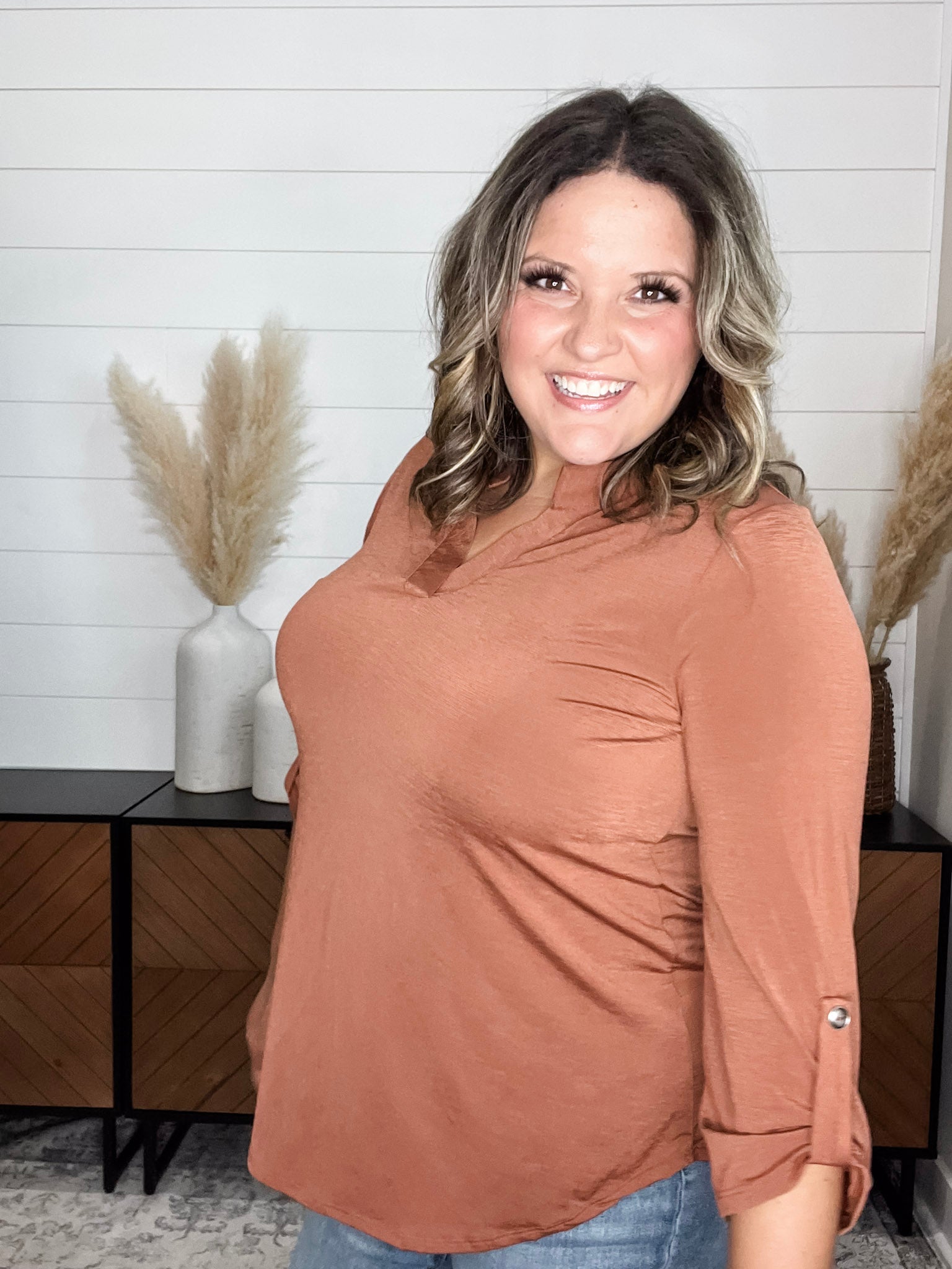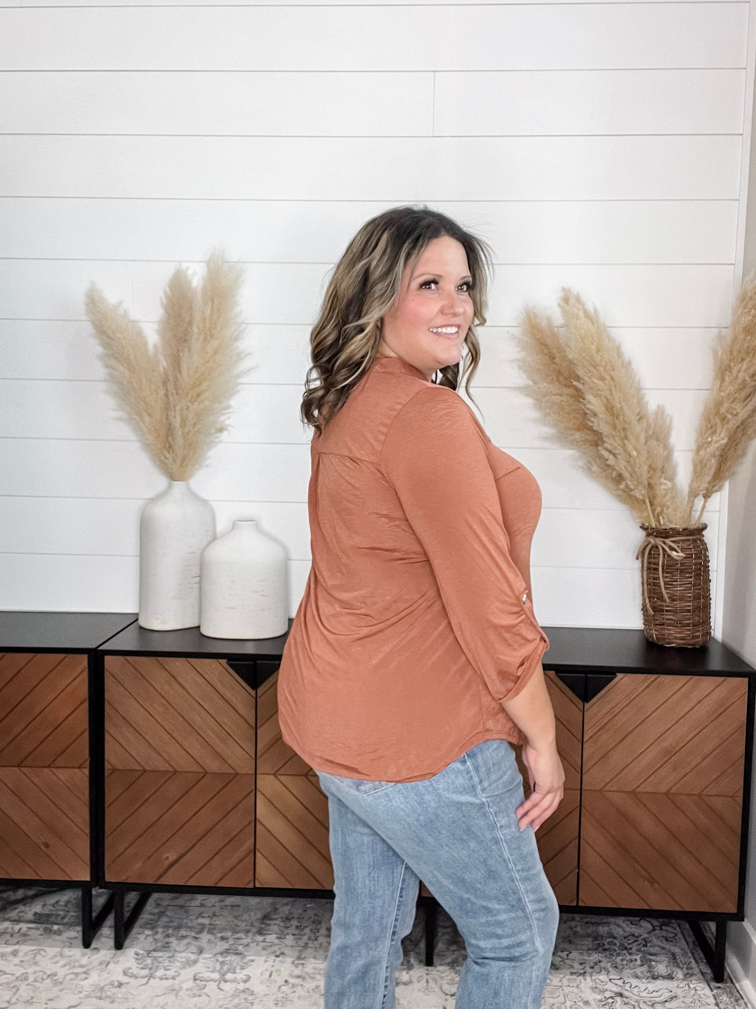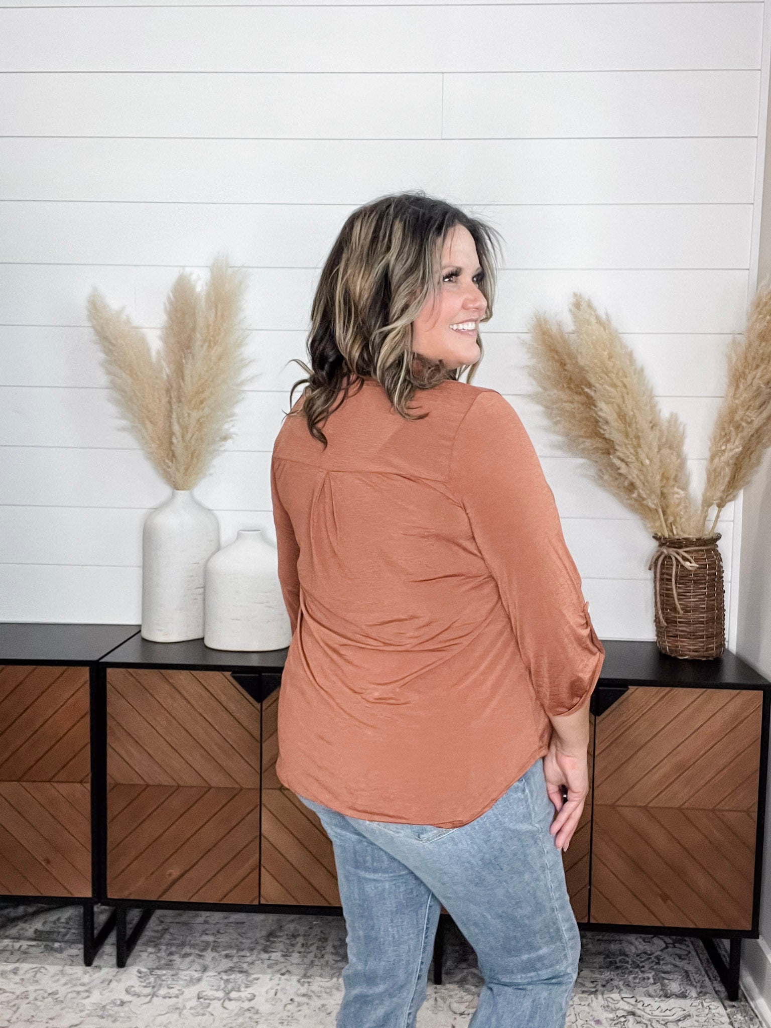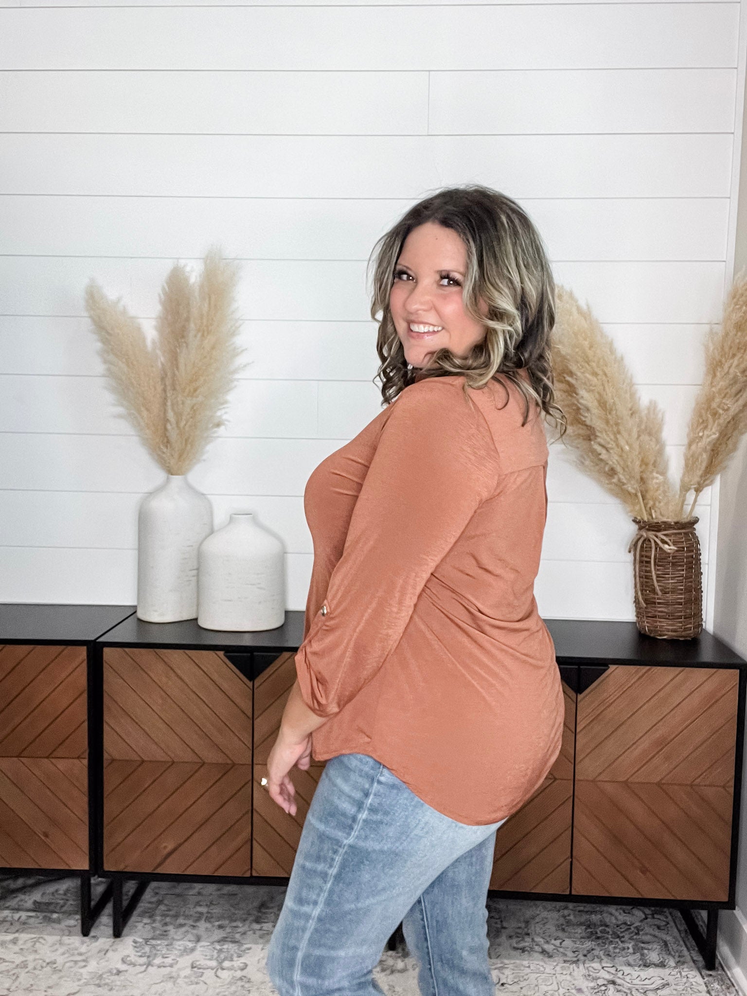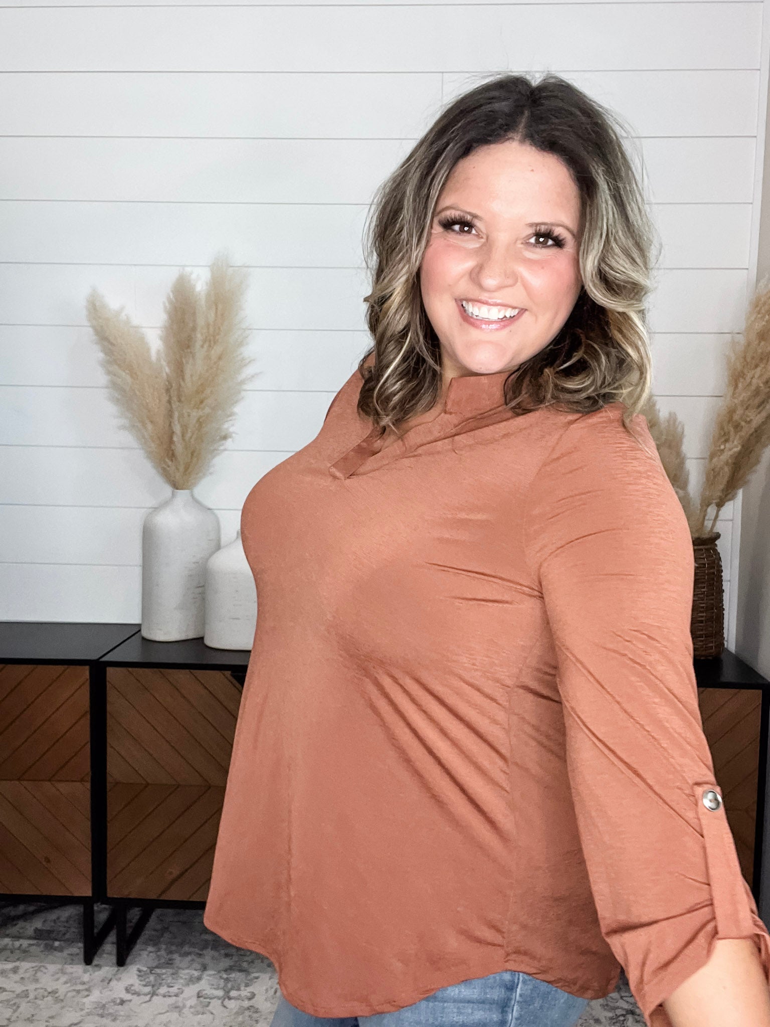 "Timeline" 3/4 Sleeve Split Neck (Rust)