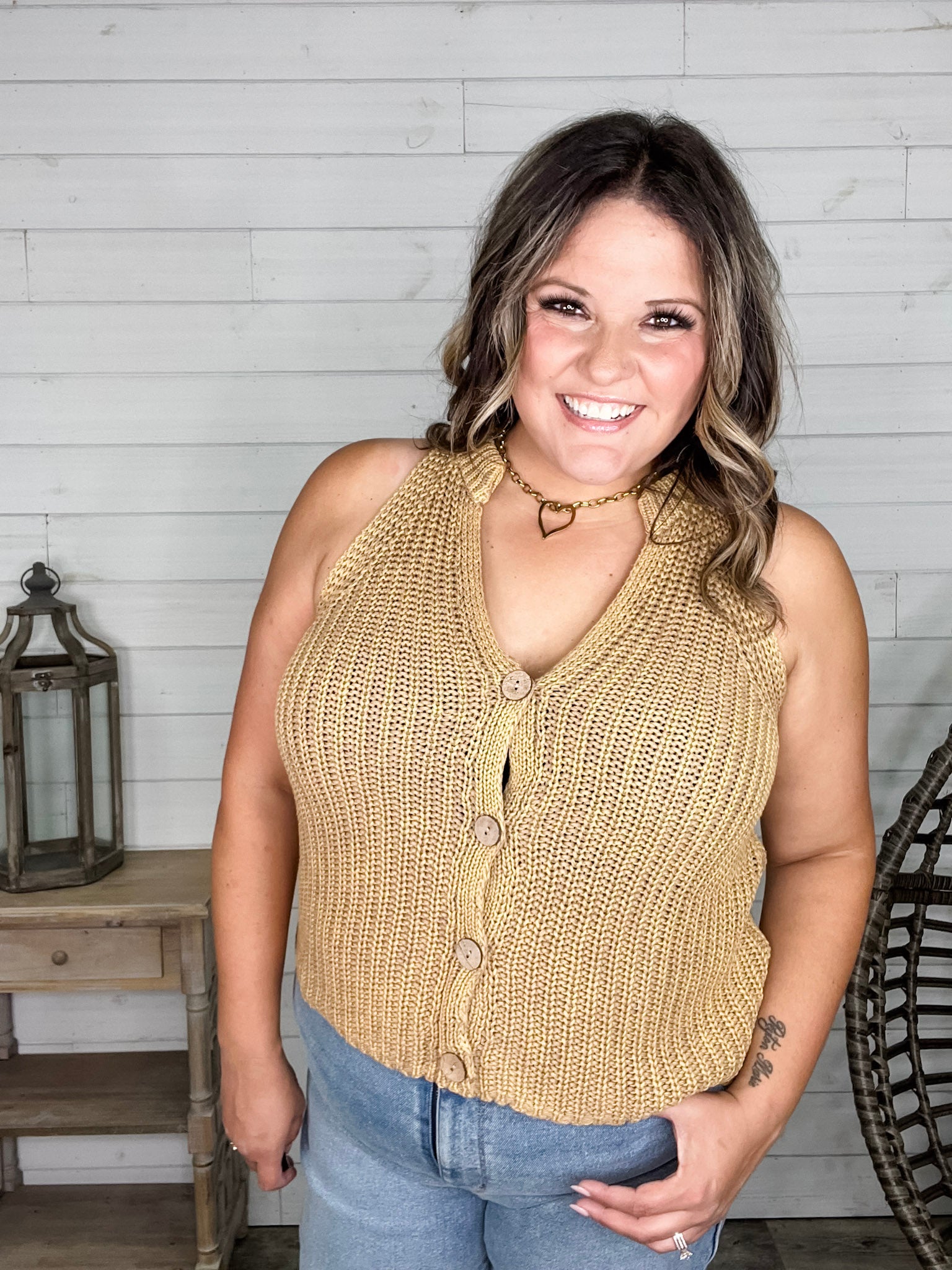 Stay cozy and stylish with the "Timestamp" Button Front Sweater Vest from White Birch Brand. This lightweight vest features a wide weft knit that adds texture and charm to any outfit. Perfect for layering, it brings a playful touch to your wardrobe while keeping you comfortable all day long.