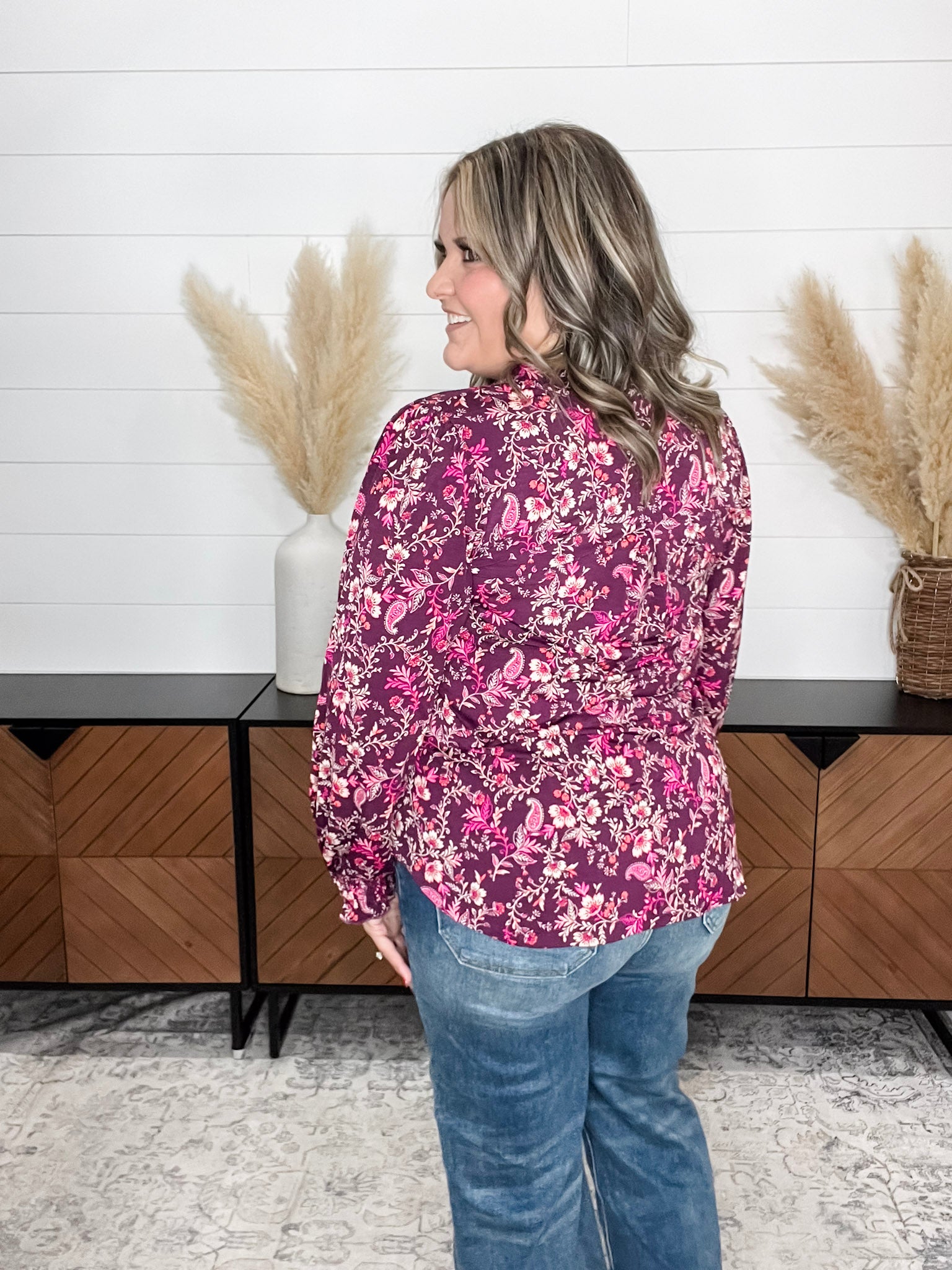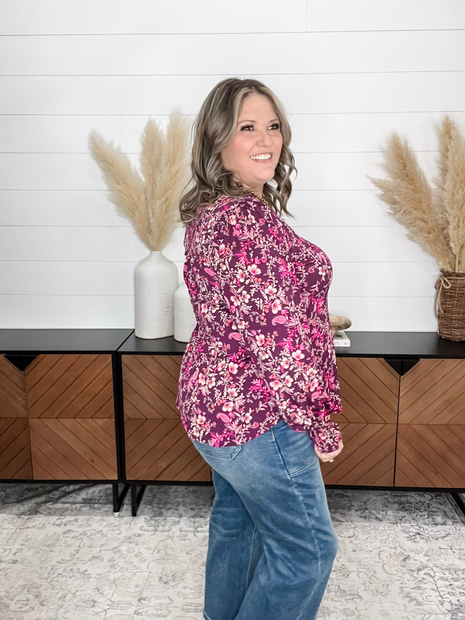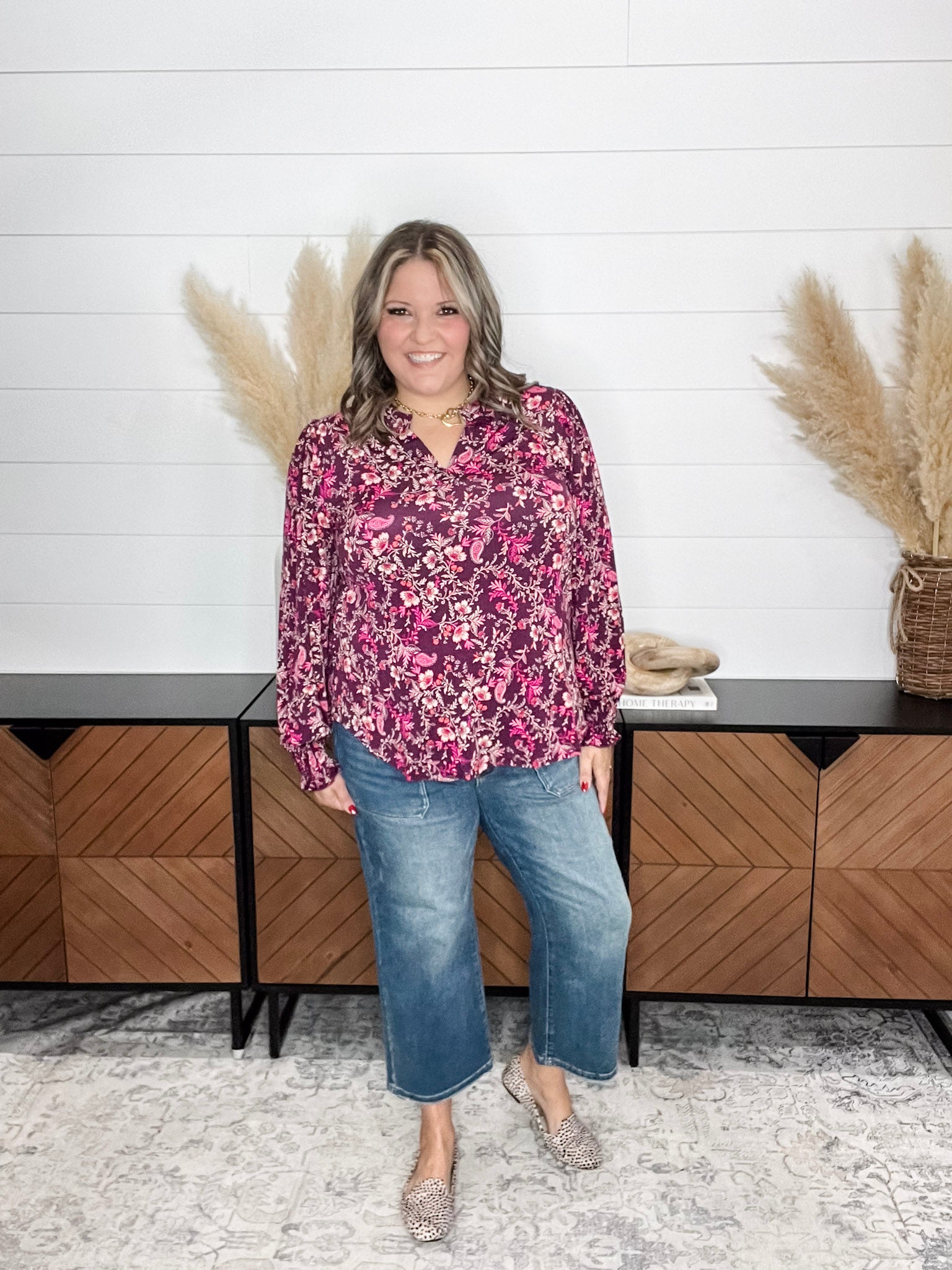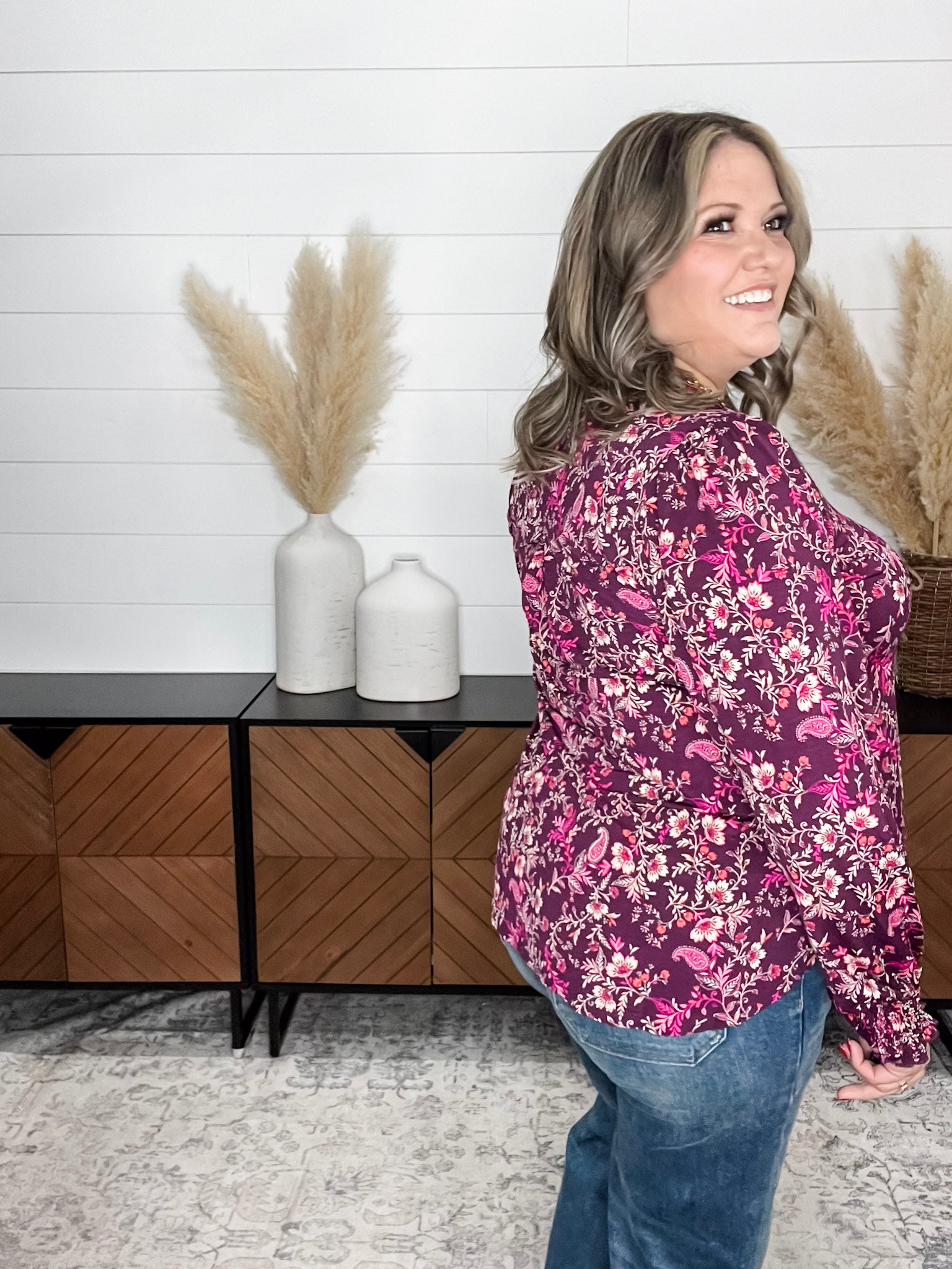 Get cozy and chic with the "Titanium" Smocked Wrist Long Sleeve Split Neck top. Its slinky, stretchy fabric feels like a second skin—just remember to size down one for the perfect fit. Featuring a rich wine base, this playful piece adds a splash of color and style to any outfit.