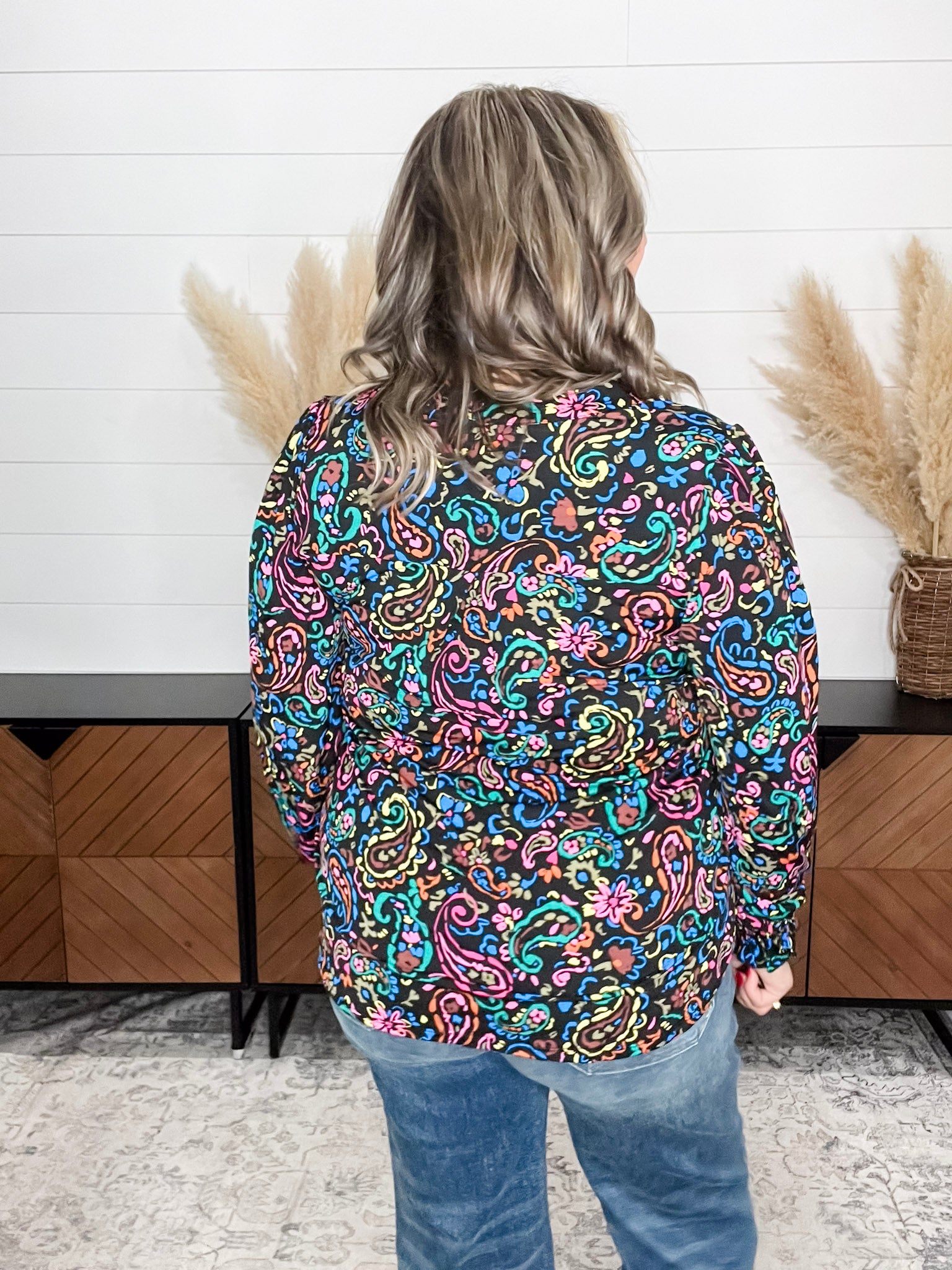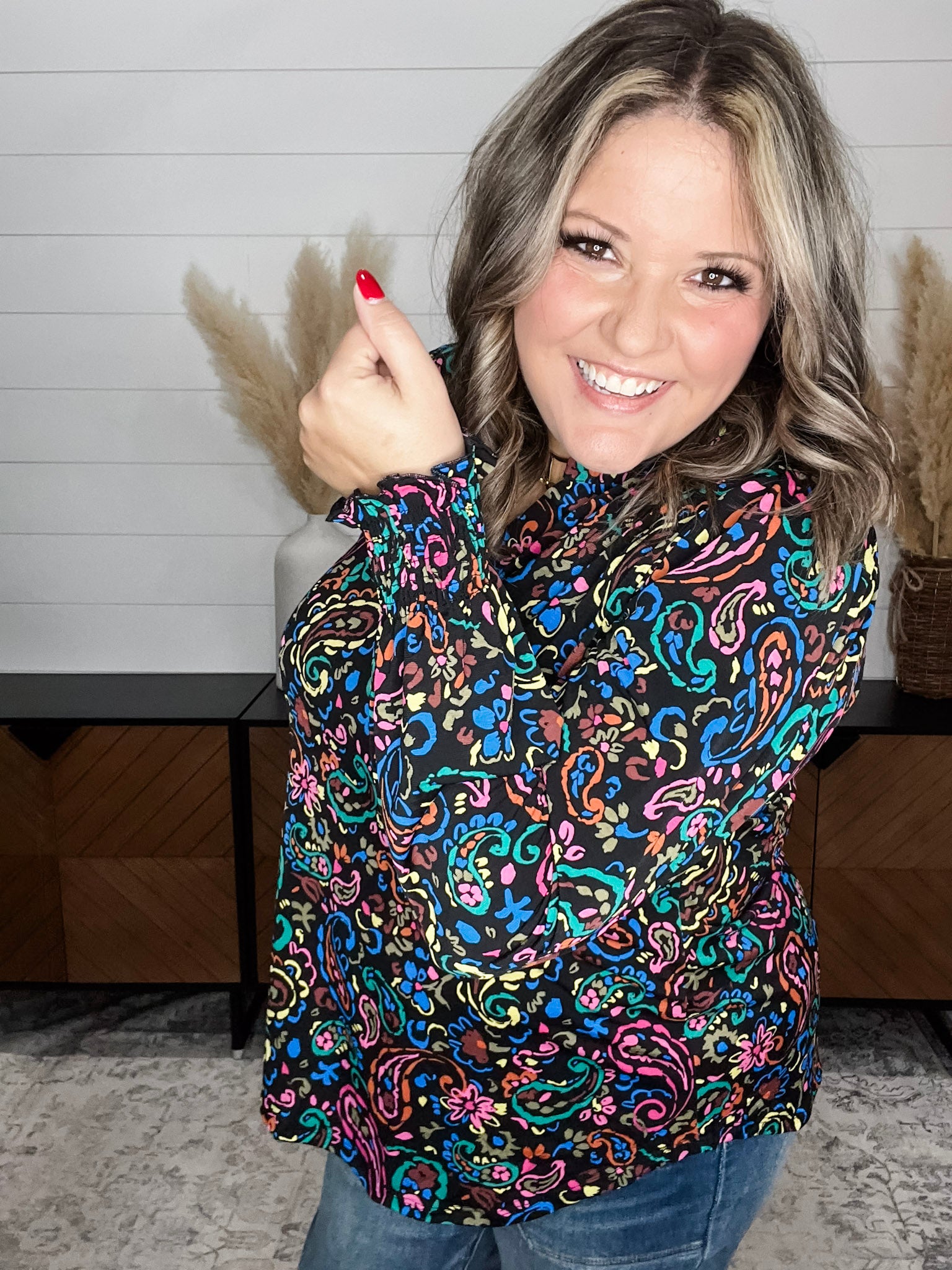 Slip into the "Tungsten" Smocked Wrist Long Sleeve Split Neck for a playful twist on classic style. Its slinky, stretchy fabric hugs your curves just right—just remember to size down one for the perfect fit. The sleek black base pairs effortlessly with any look, while smocked wrists and a split neck add flirty, fun details. Effortless comfort meets bold charm in this standout piece.