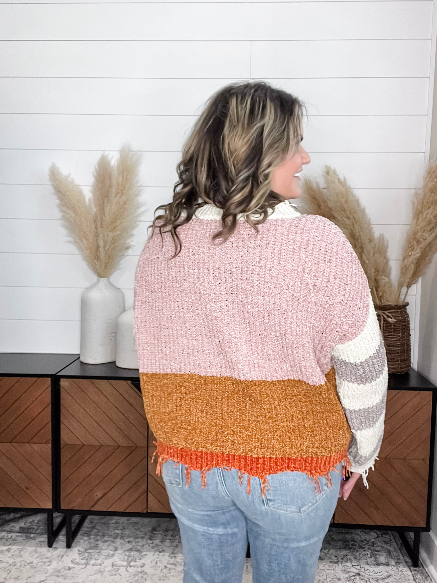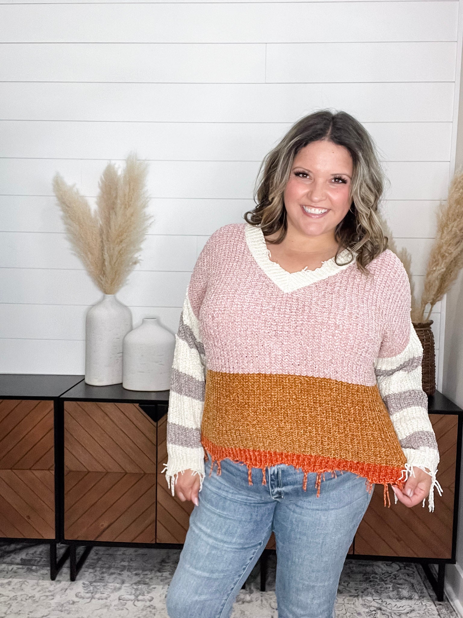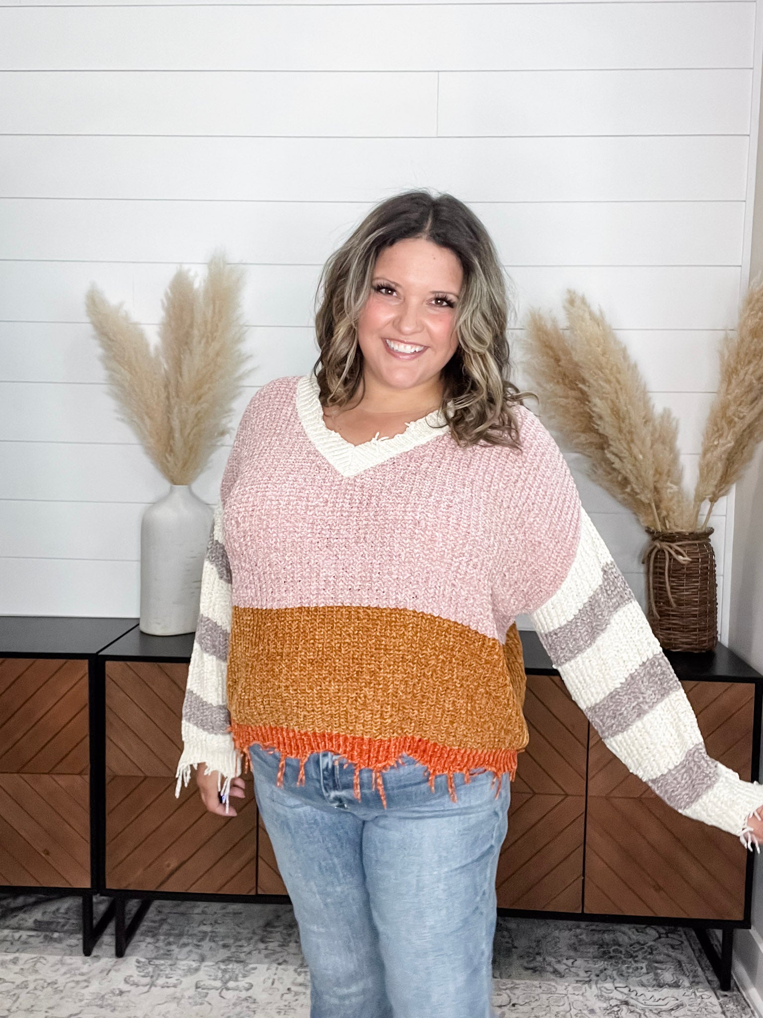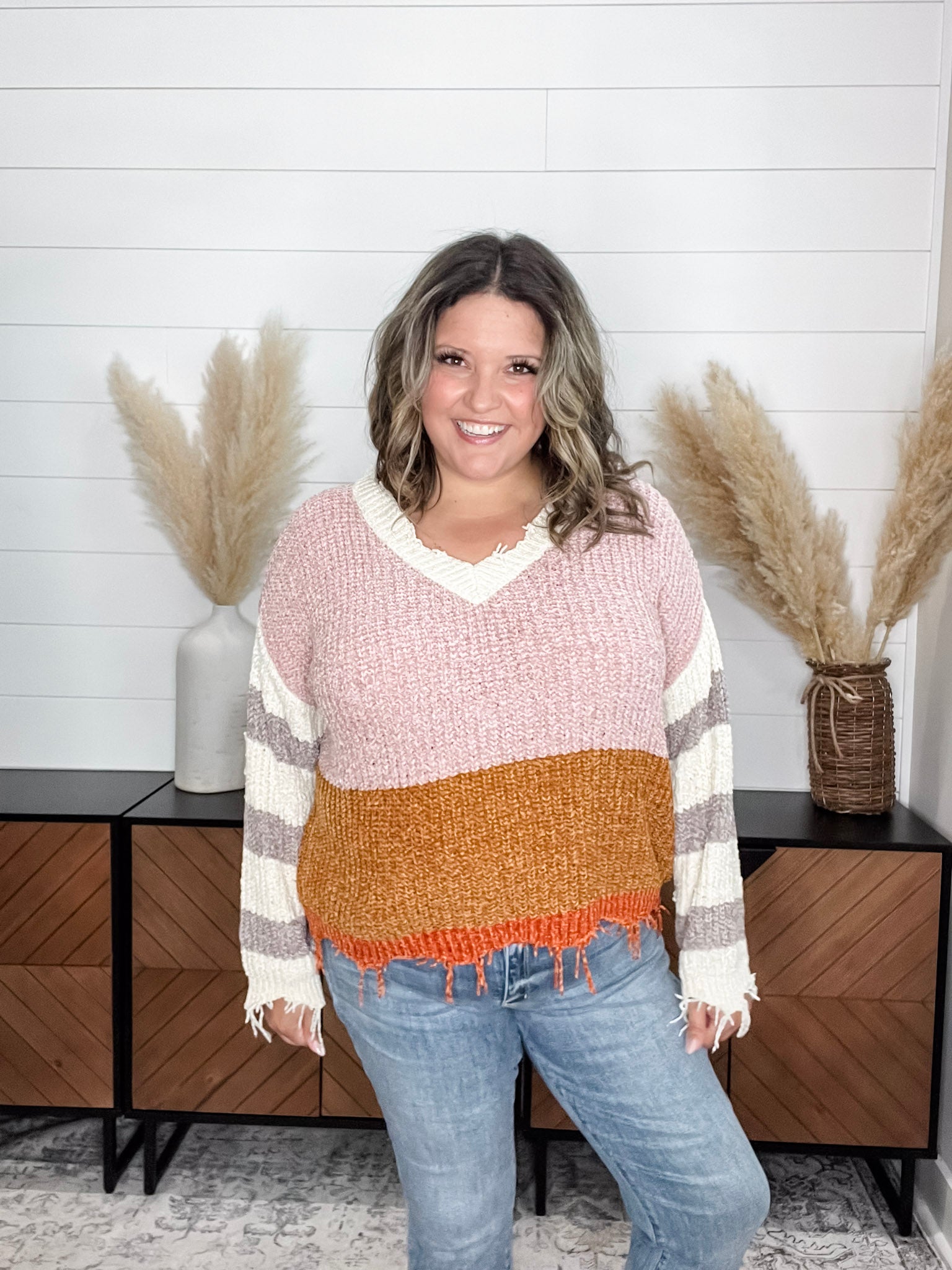 "Unraveled" V Neck Chenille Sweater