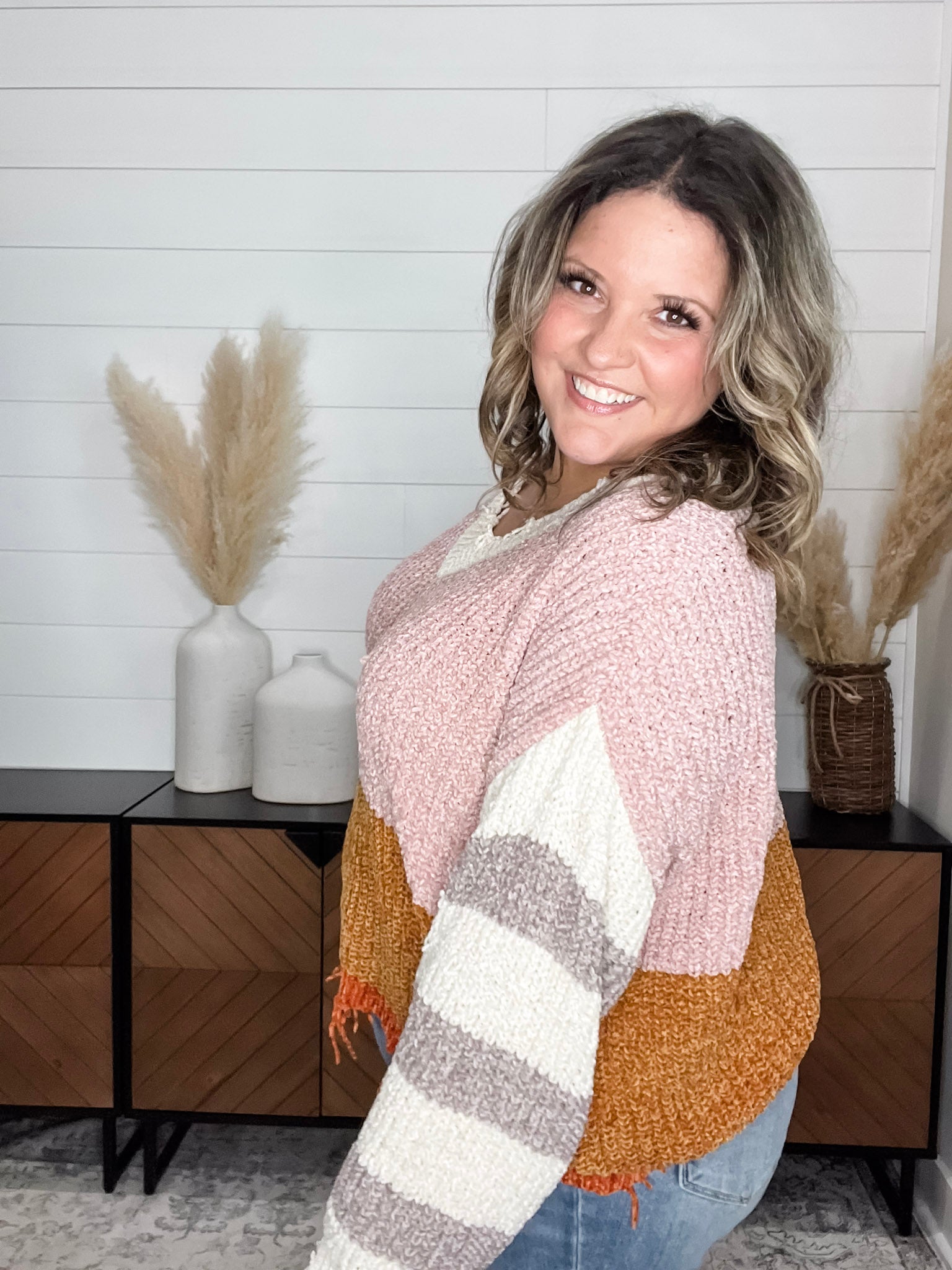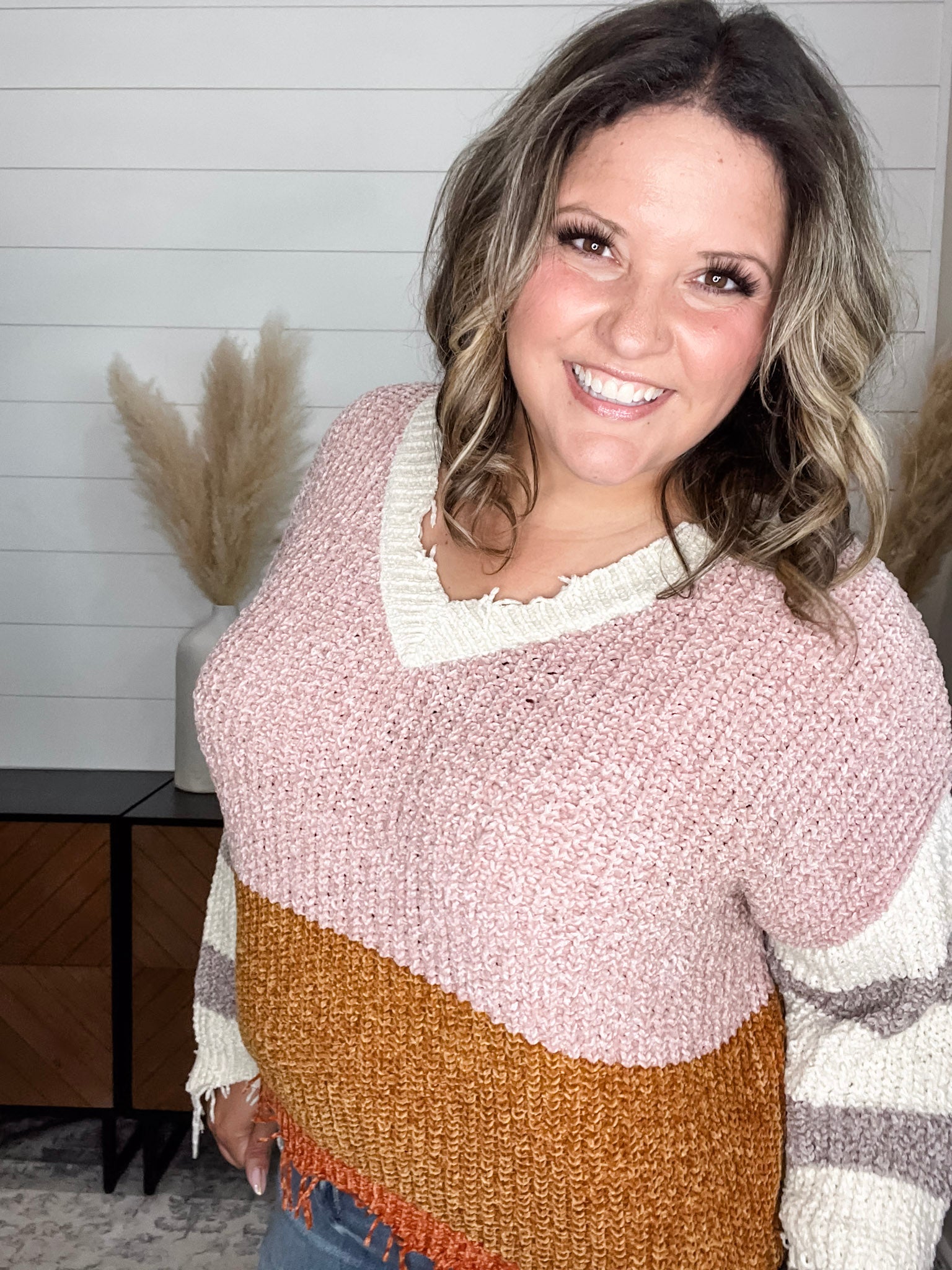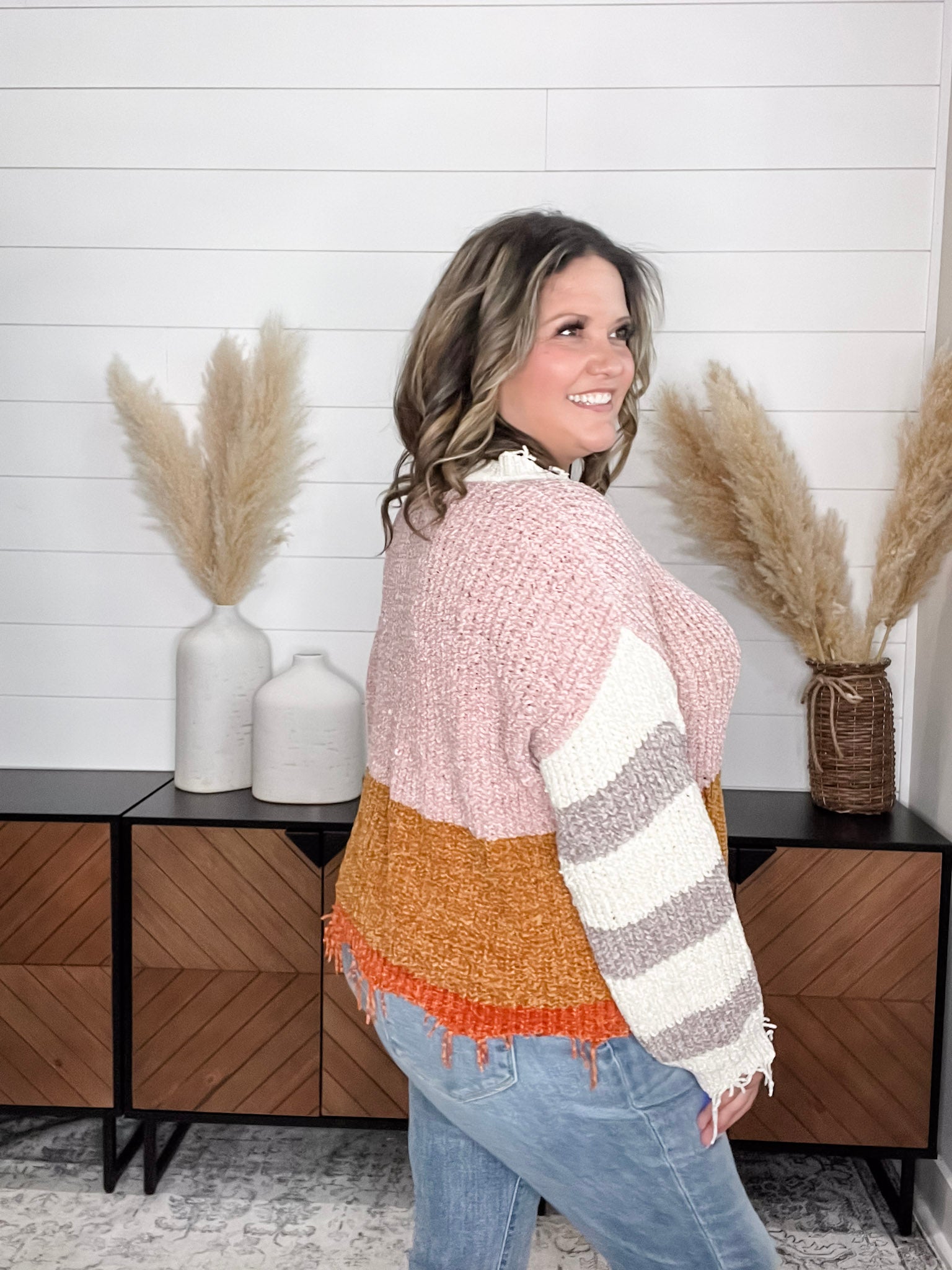 "Unraveled" V Neck Chenille Sweater