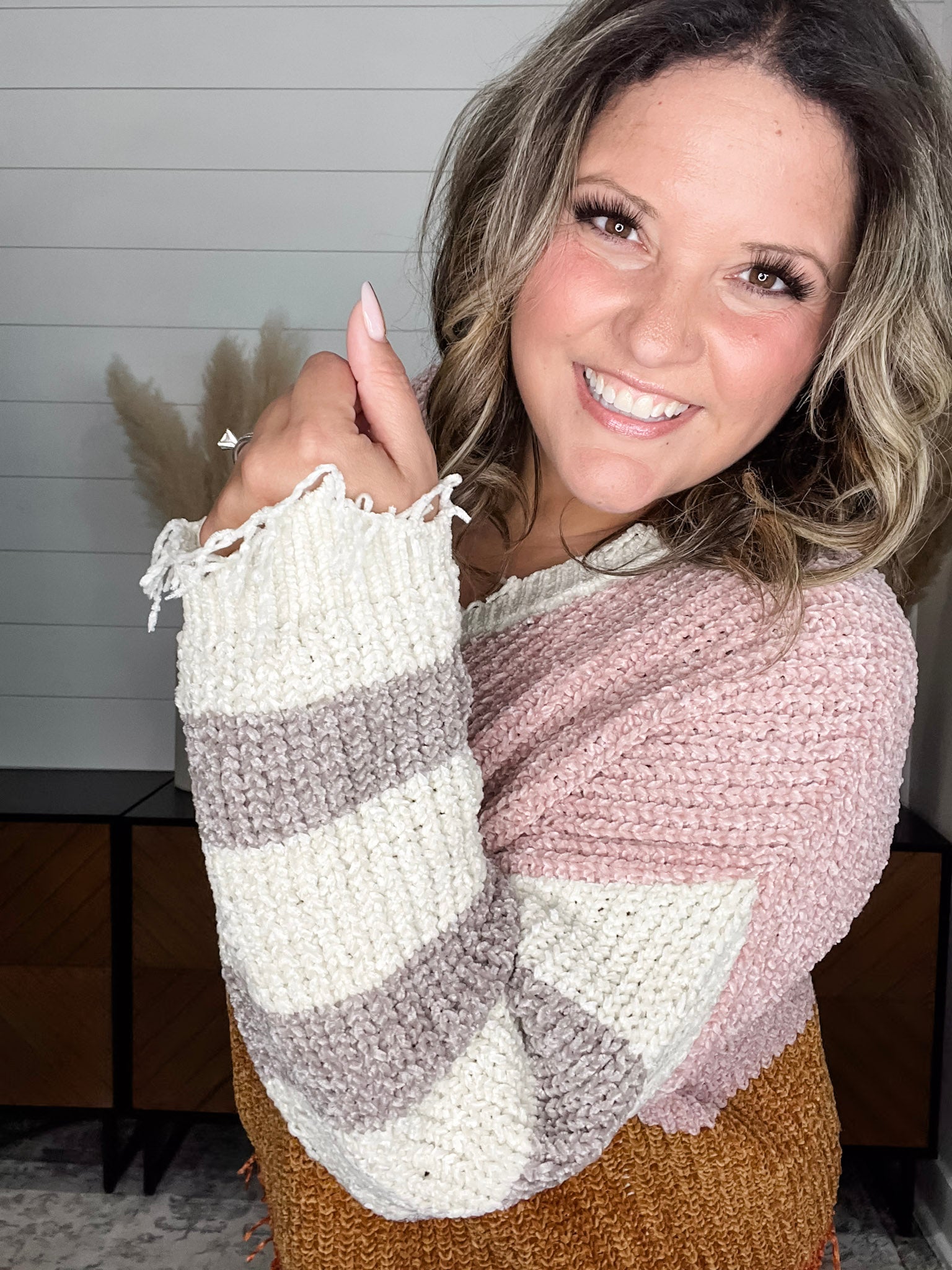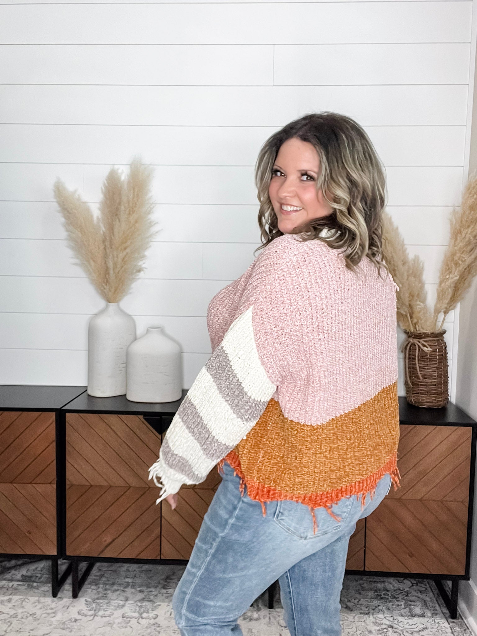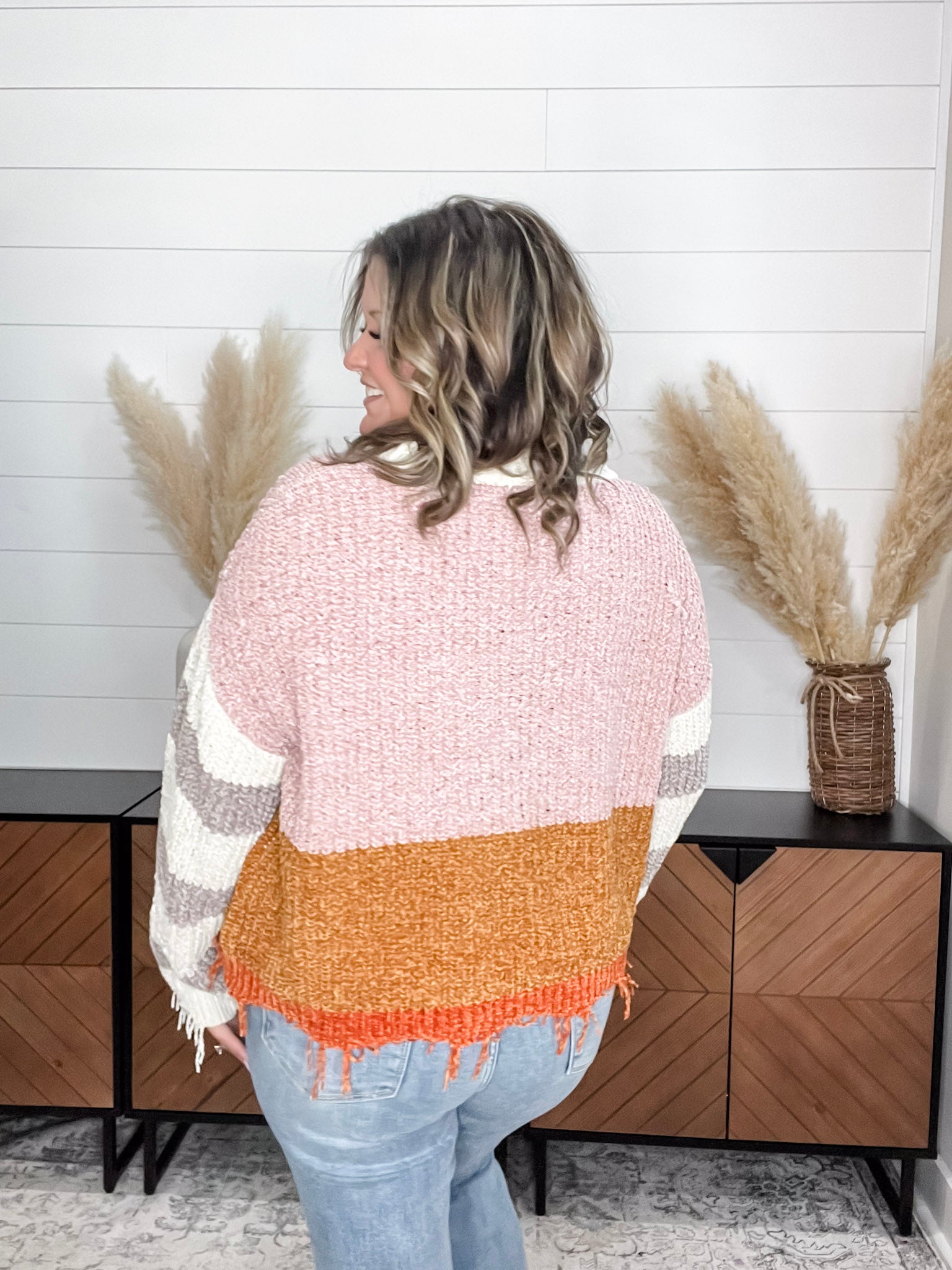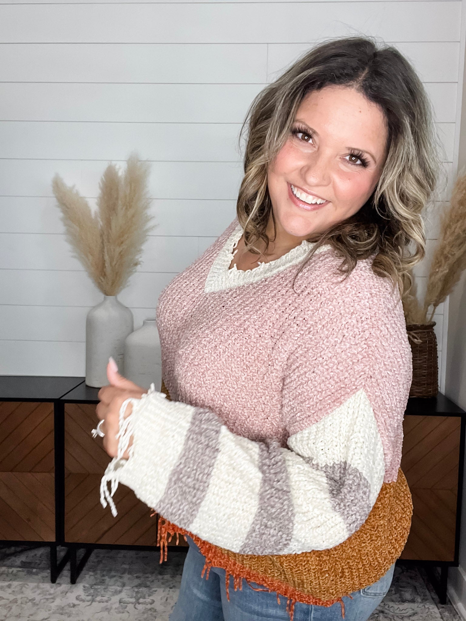 "Unraveled" V Neck Chenille Sweater