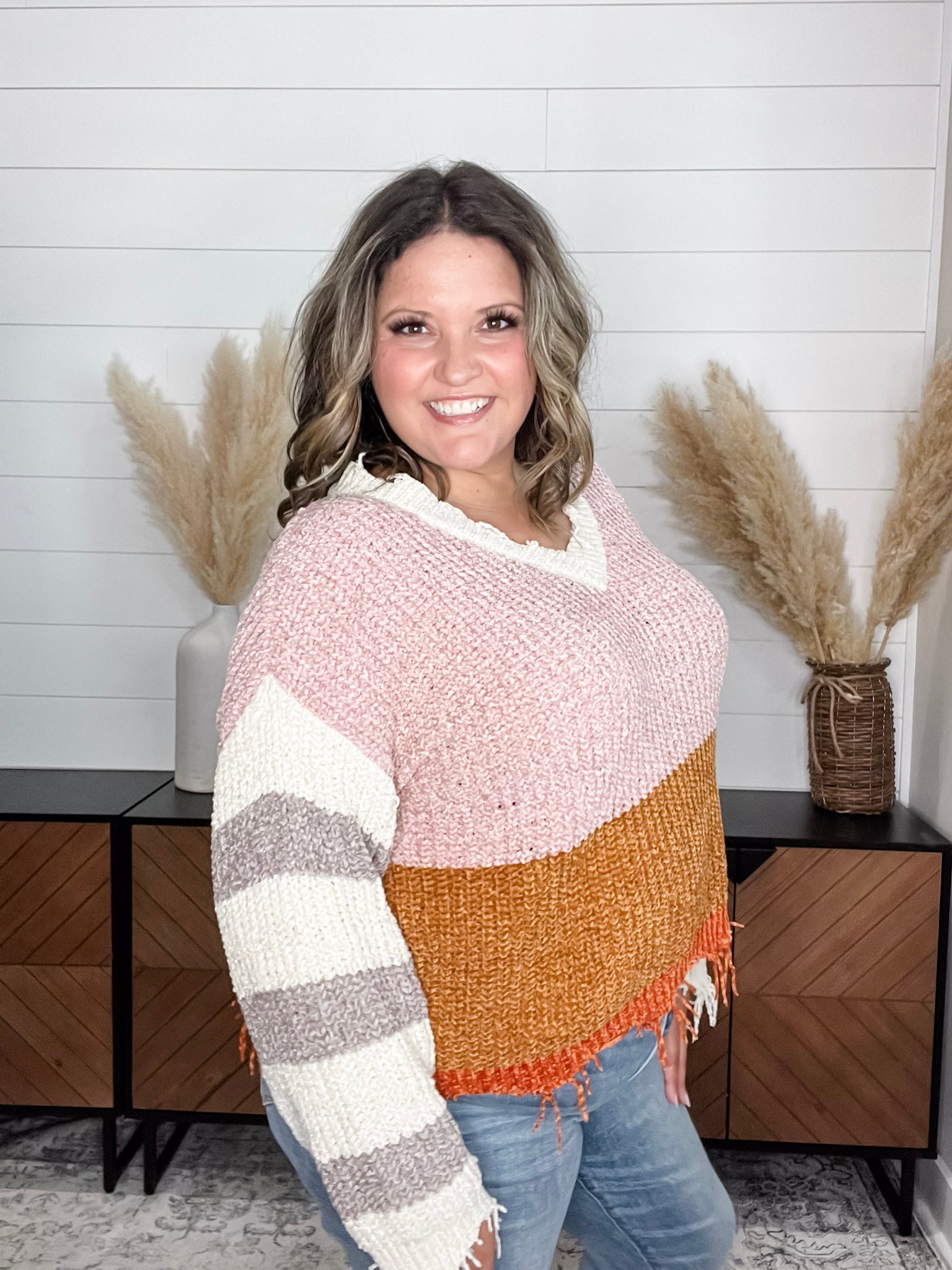 Get cozy in the softest chenille sweater around! The "Unraveled" V Neck Chenille Sweater features charming raw, distressed details that give it a fun, undone vibe. Its wide, boxy silhouette offers a relaxed fit perfect for layering or lounging. Shown here in ash and XL, it’s designed to bring comfort and style to your everyday wardrobe with a playful twist.