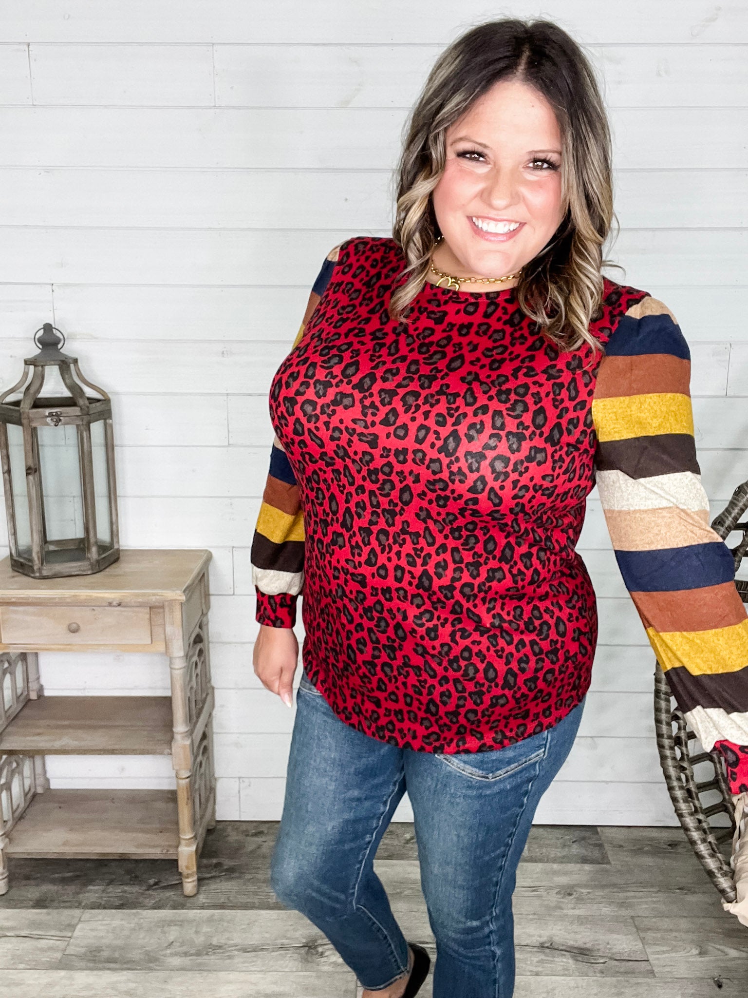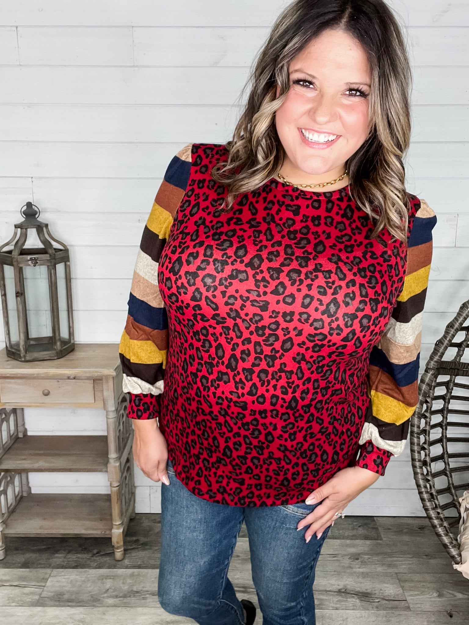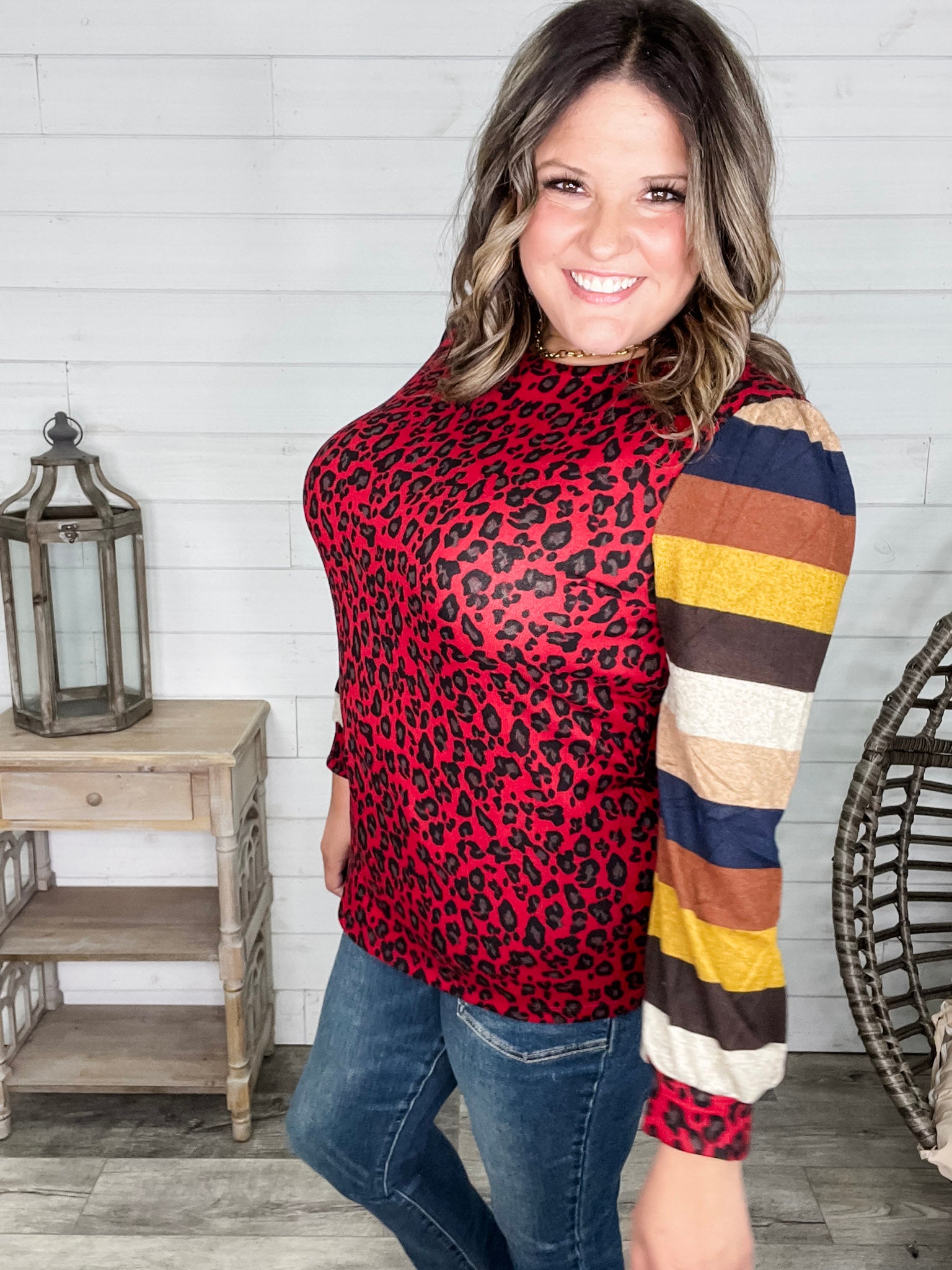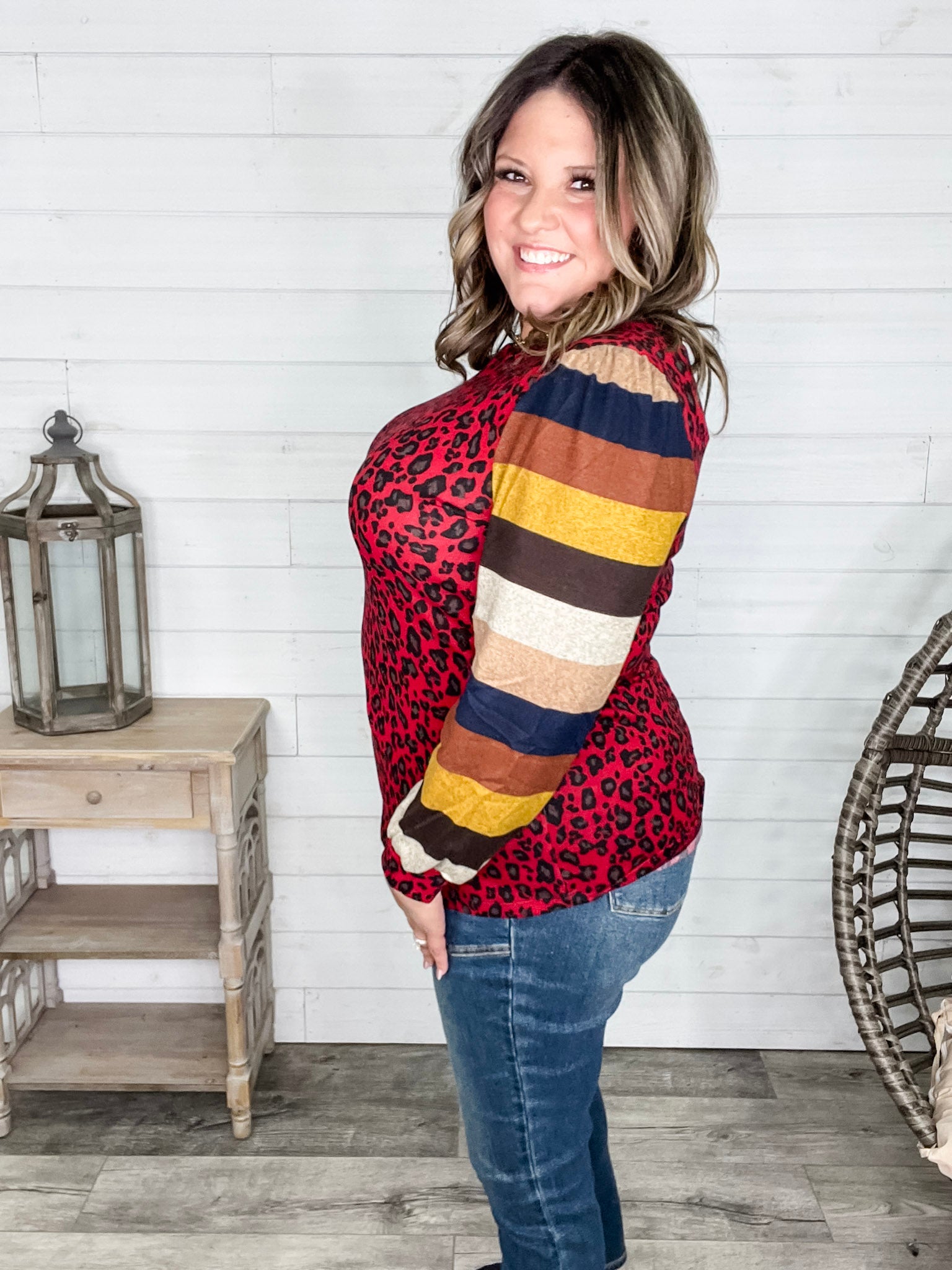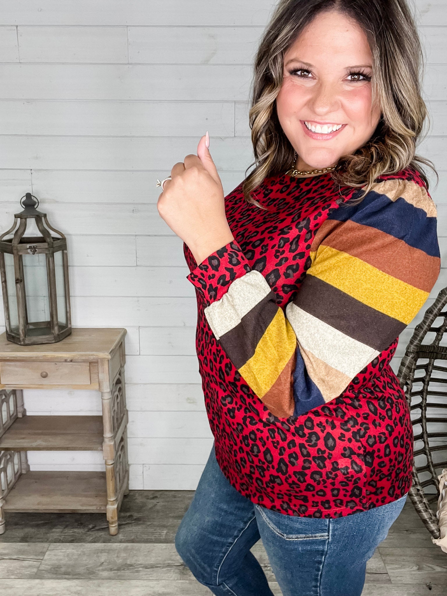 "Well Ok" Long Sleeve Animal Print with Stripe Accent