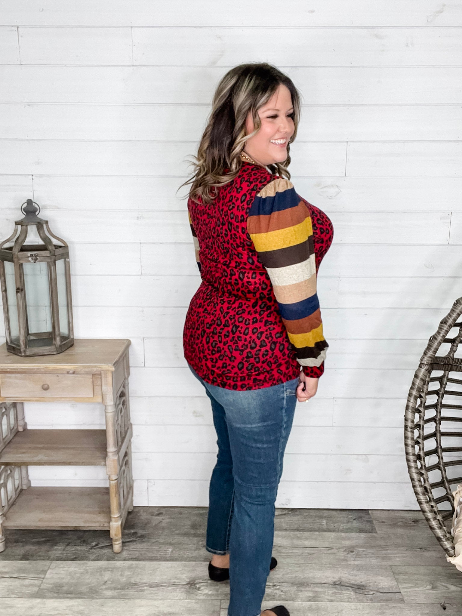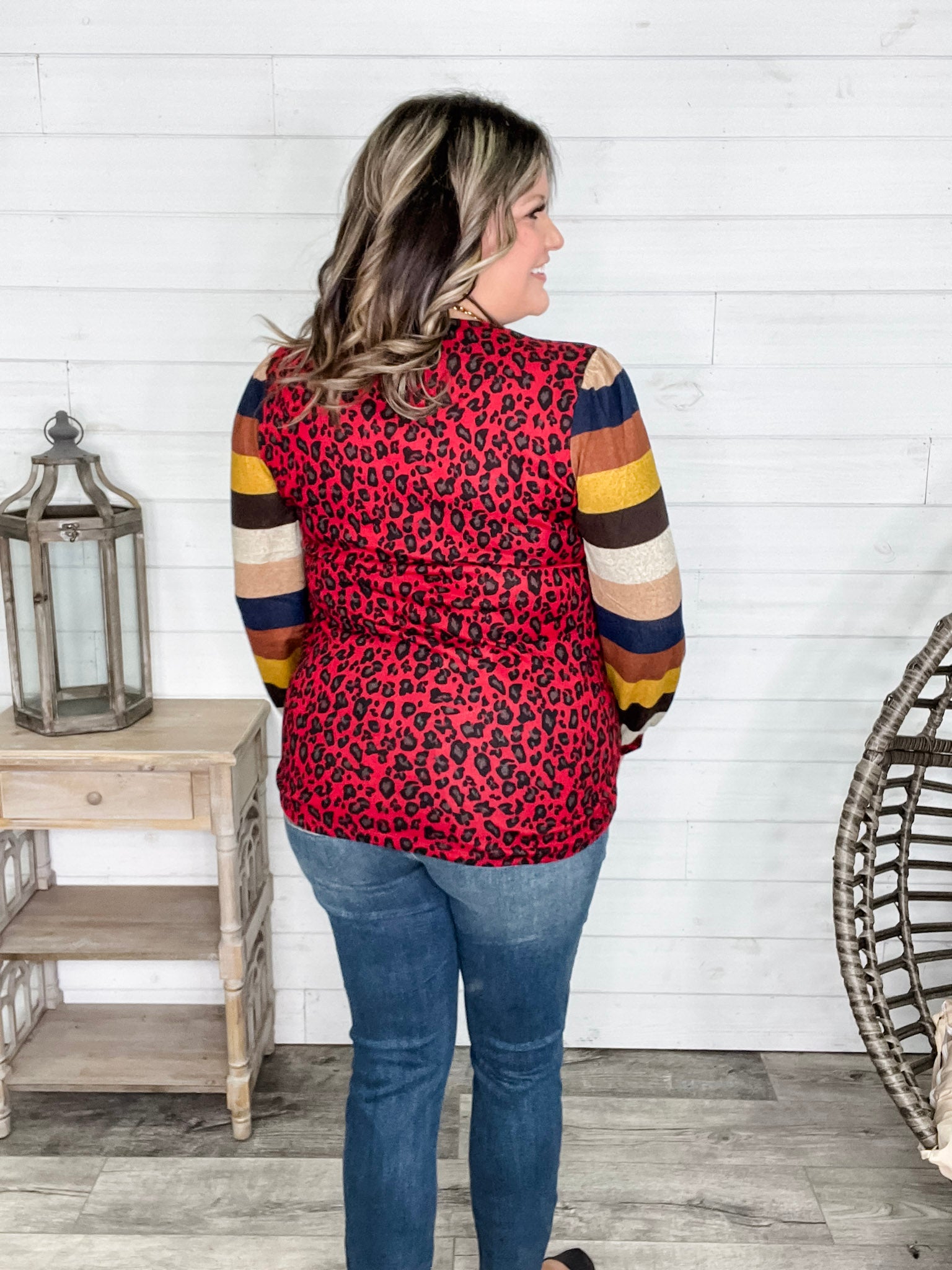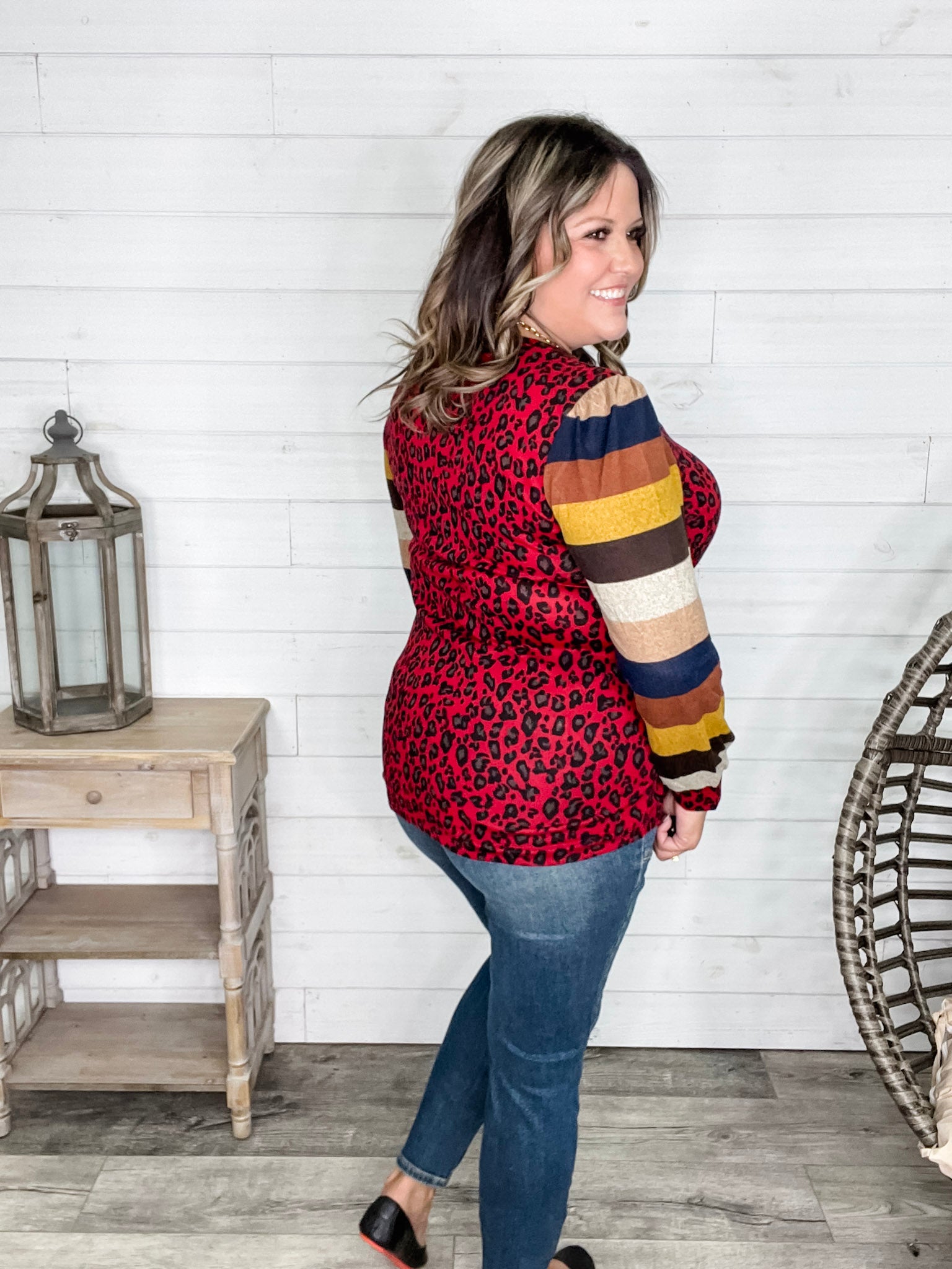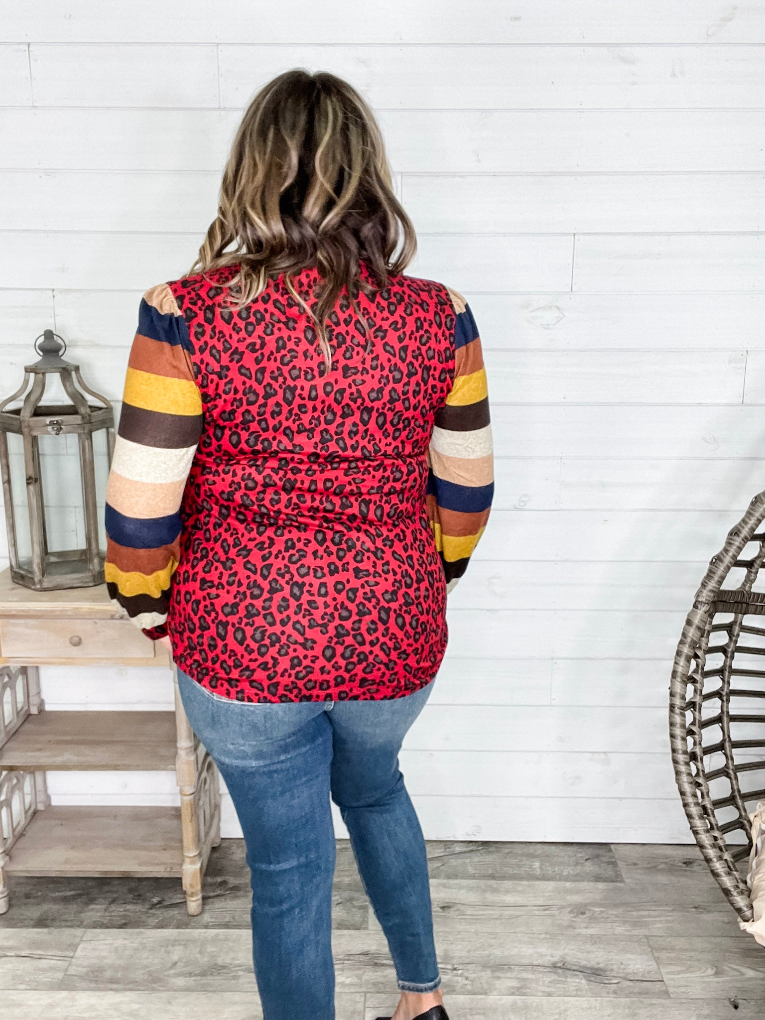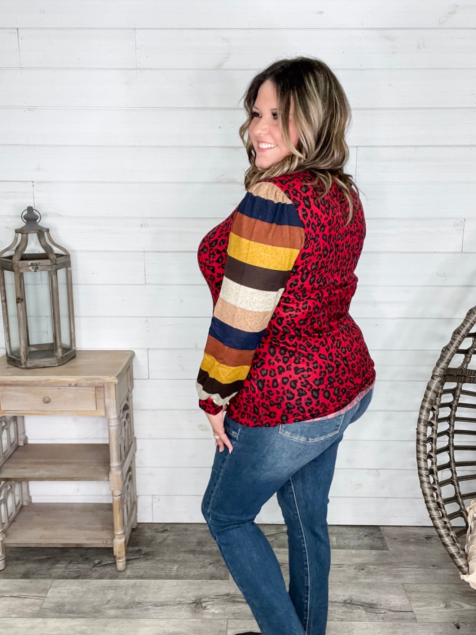 "Well Ok" Long Sleeve Animal Print with Stripe Accent
