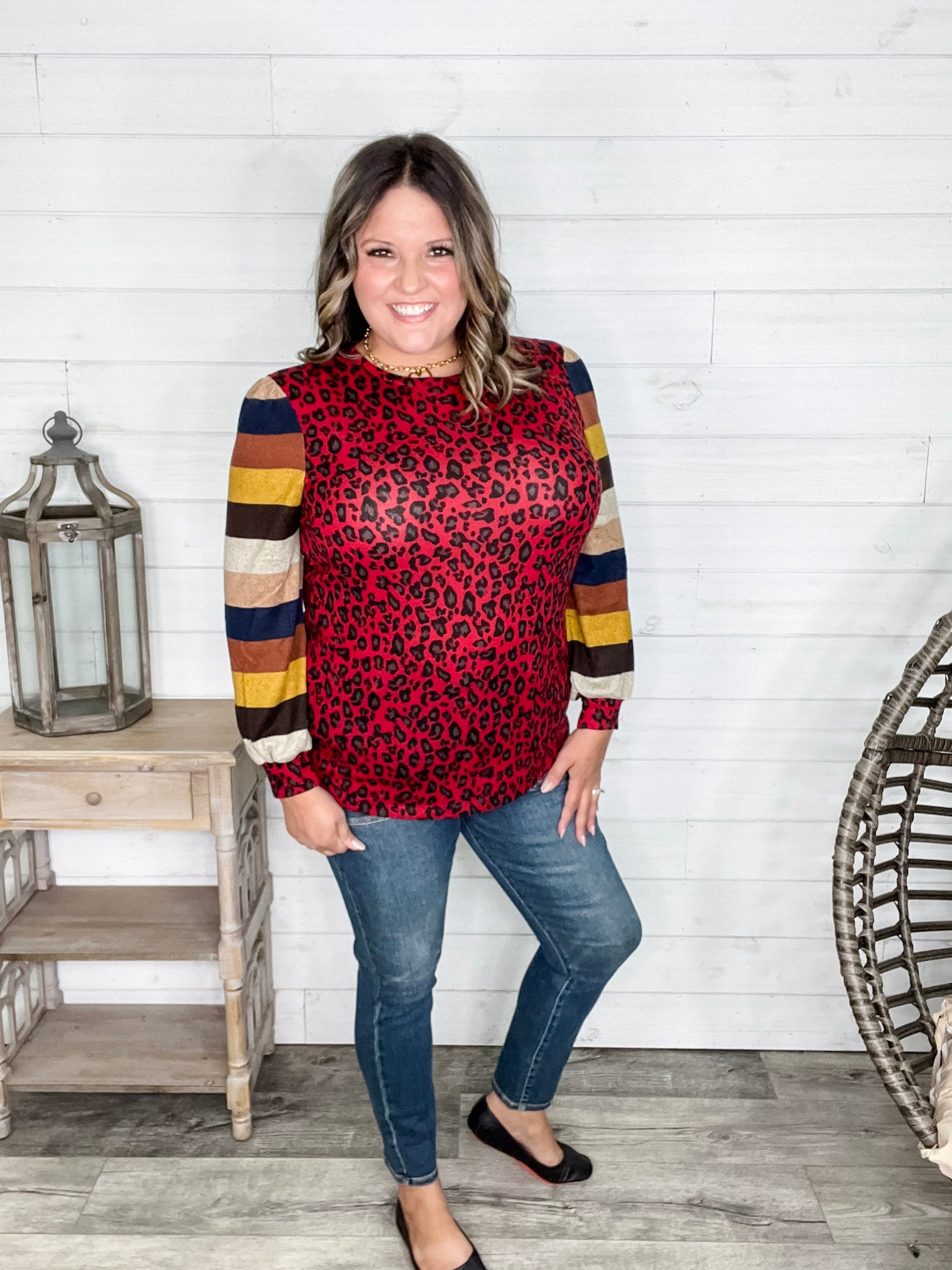 Embrace your wild side with the "Well Ok" Long Sleeve Animal Print top, featuring a fun stripe accent for a playful twist. Designed to fit true to size, this eye-catching piece blends bold patterns with comfortable wear, making it perfect for adding a splash of personality to your everyday look.