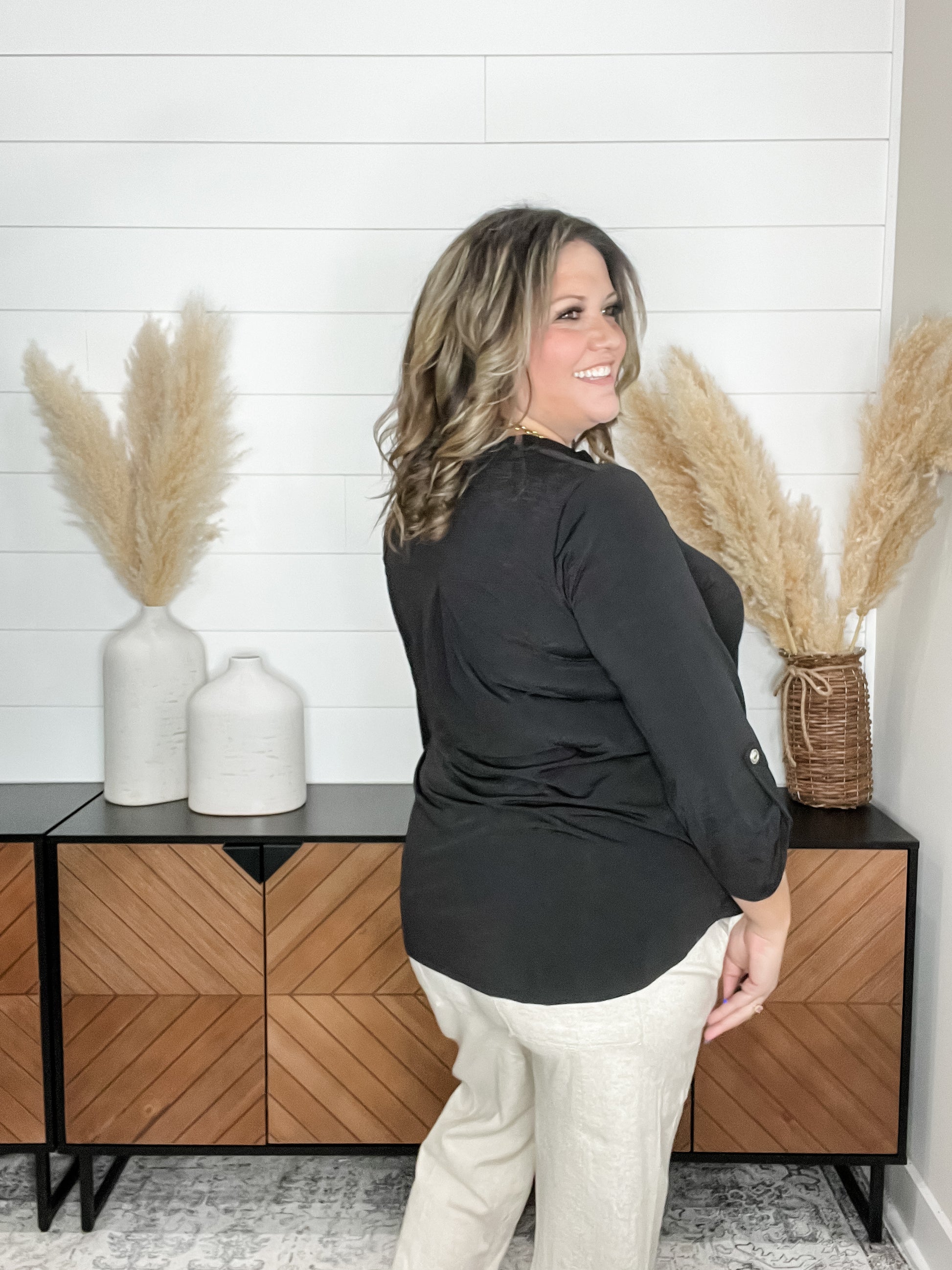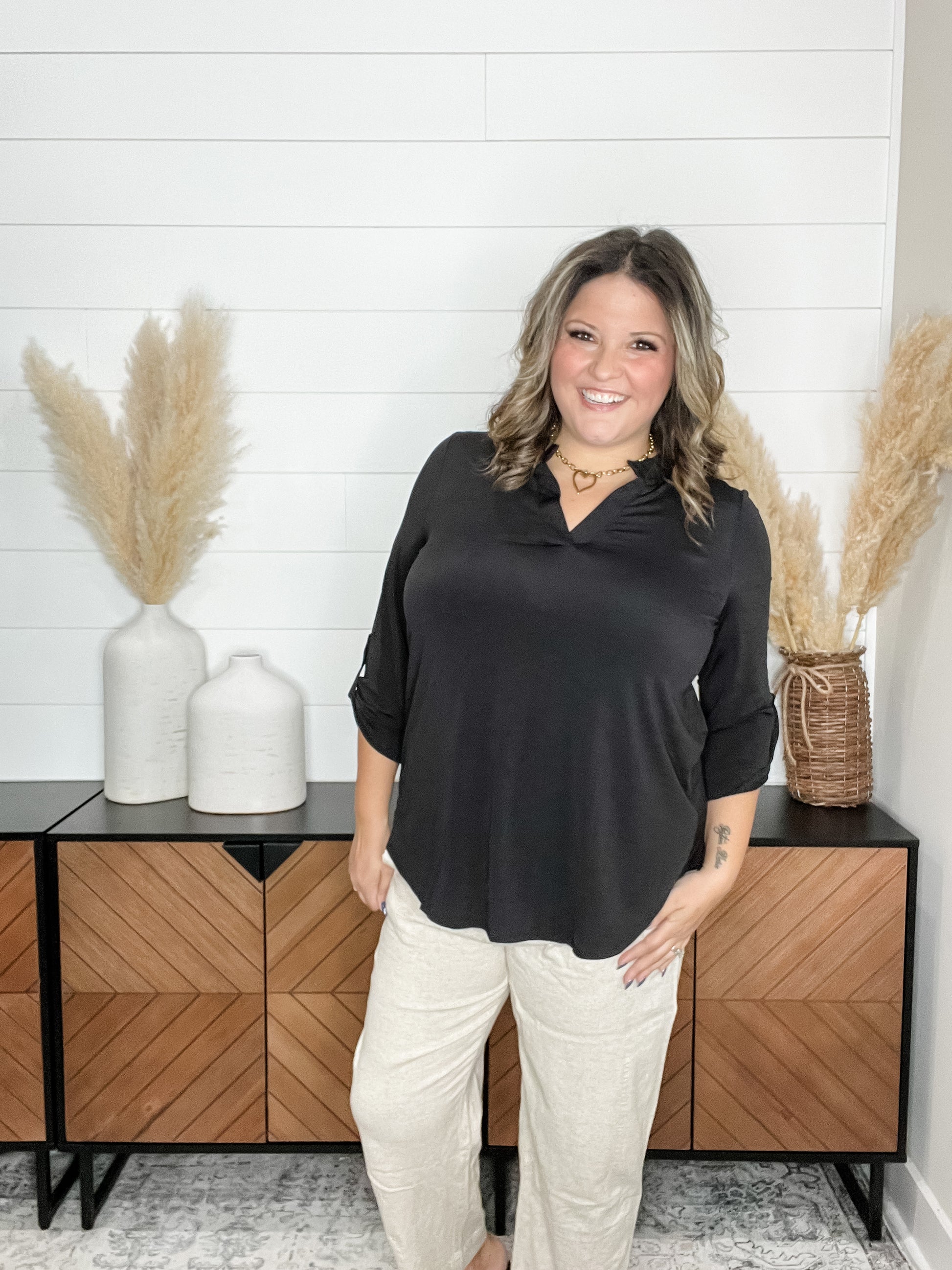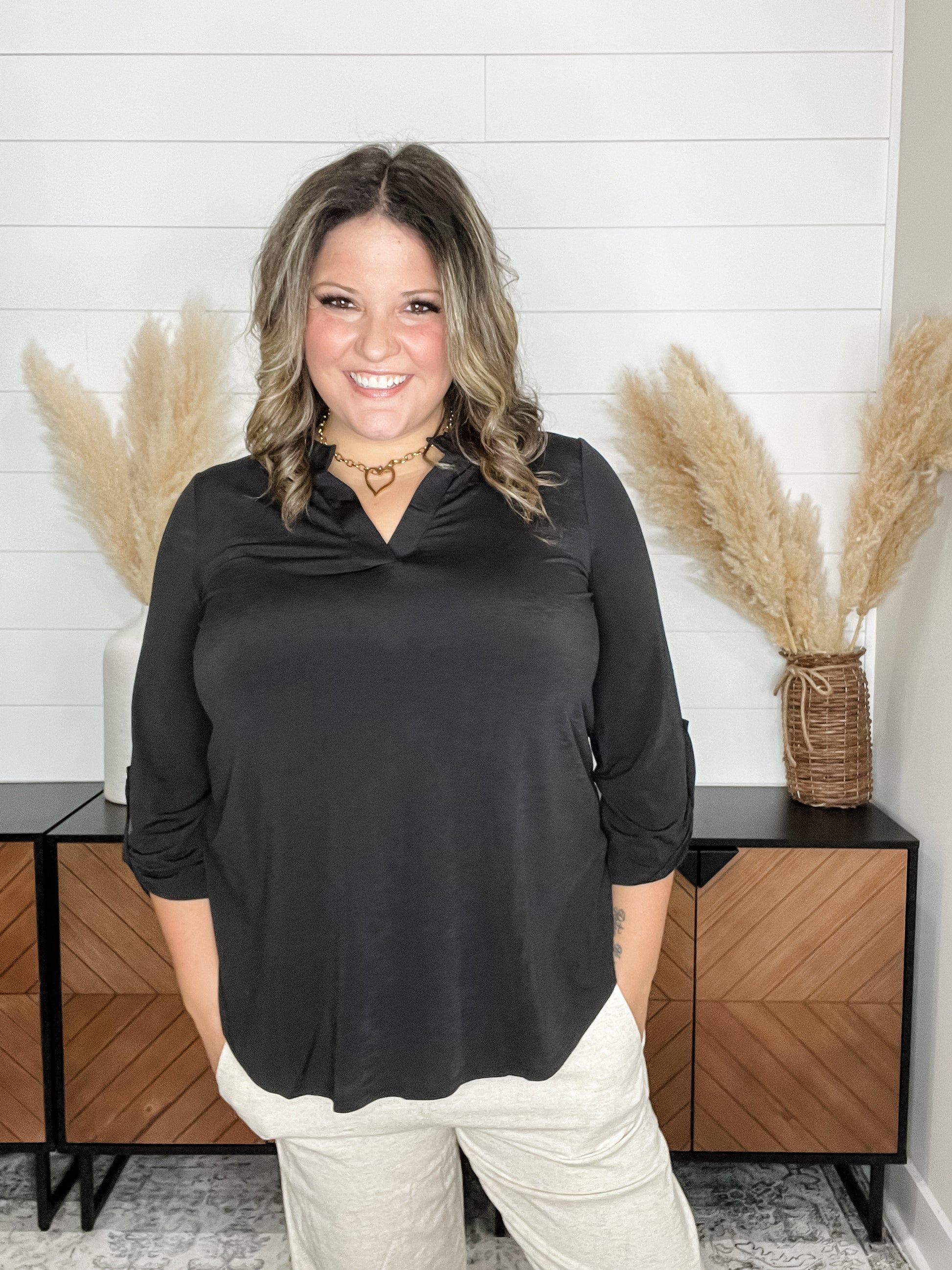 "What Can You Say" 3/4 Sleeve Split Neck (Black)