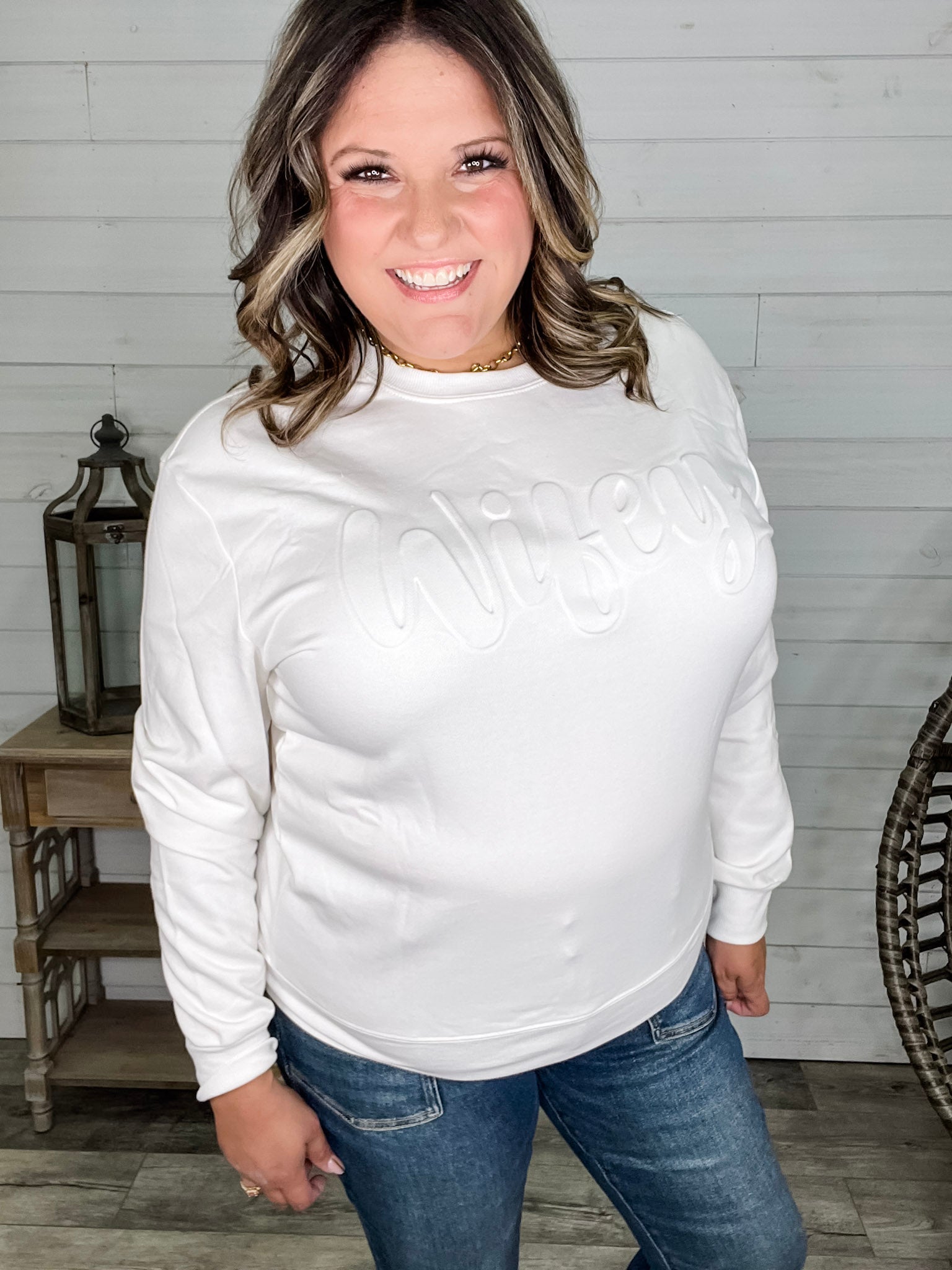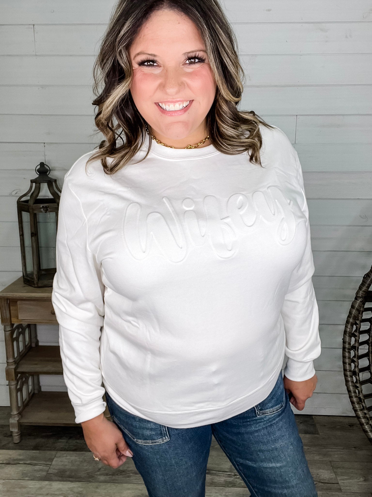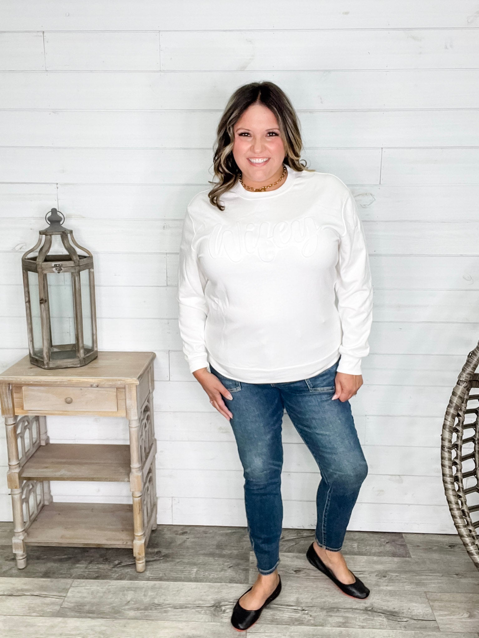 "Wifey" Embossed Crewneck Sweatshirt