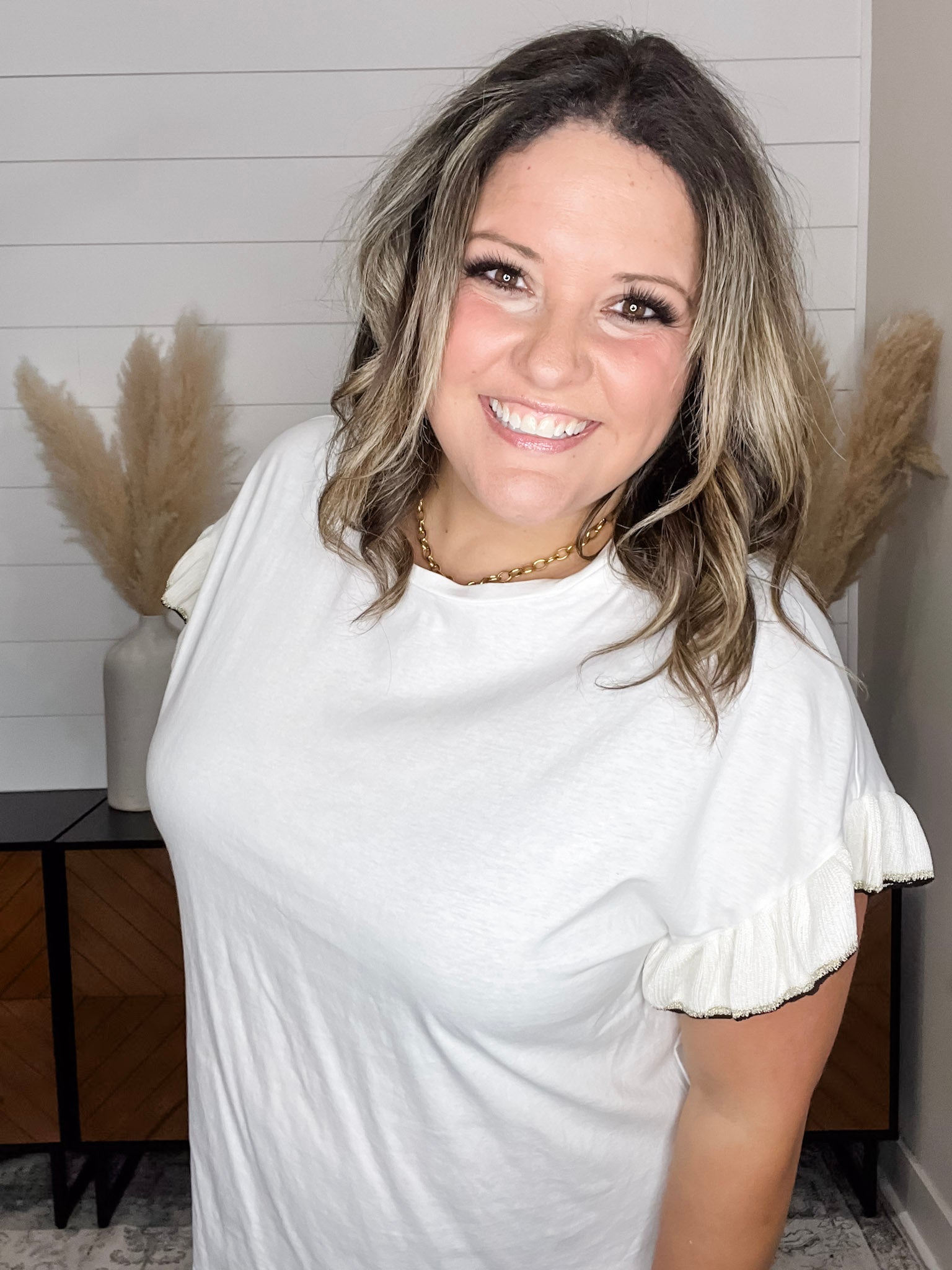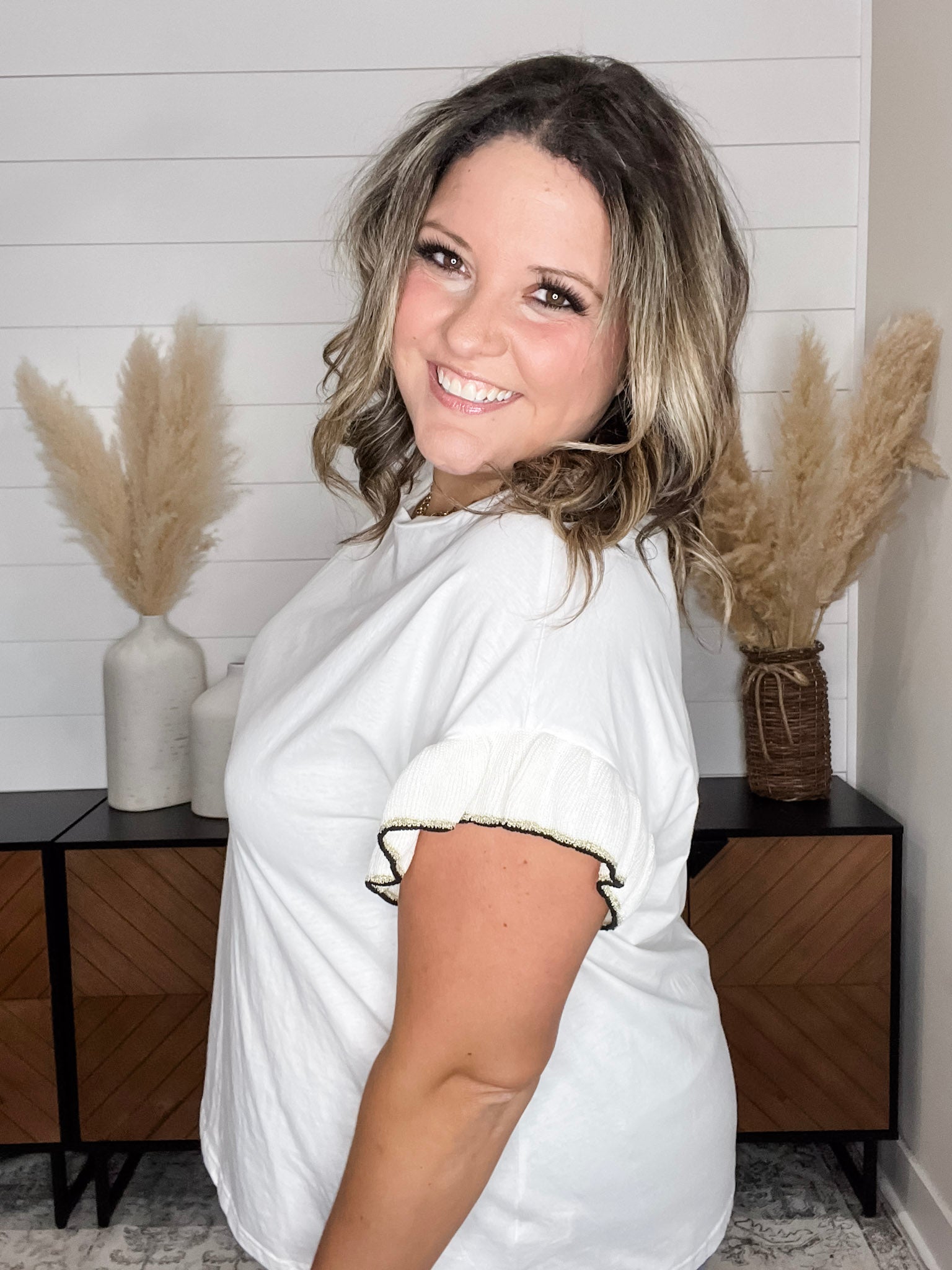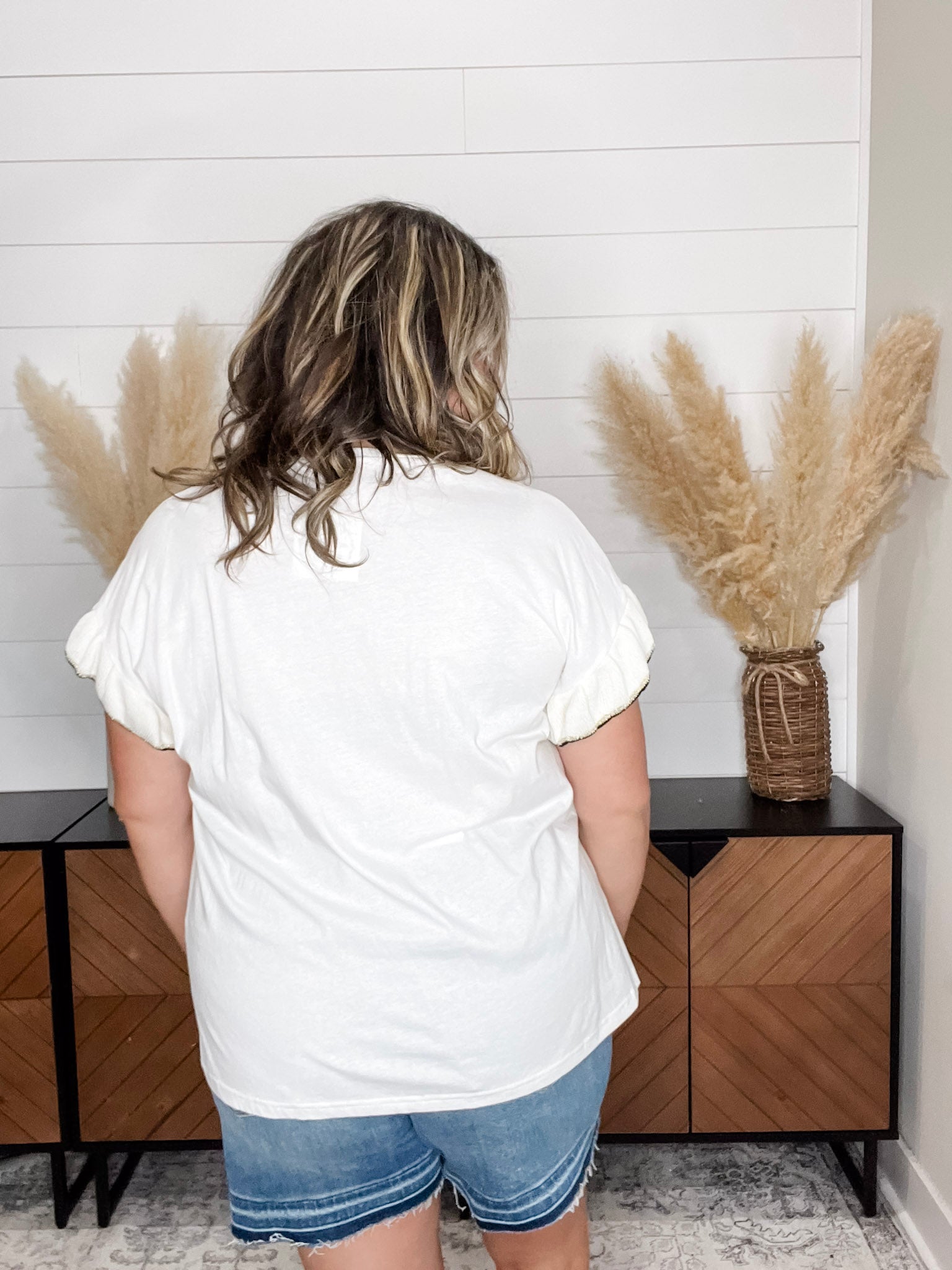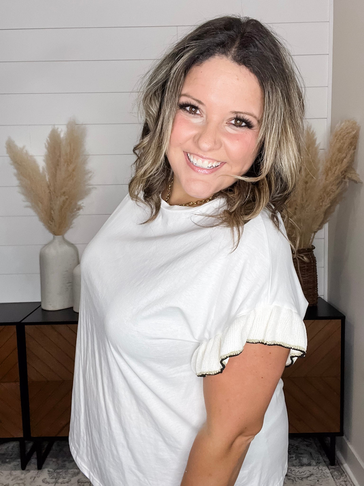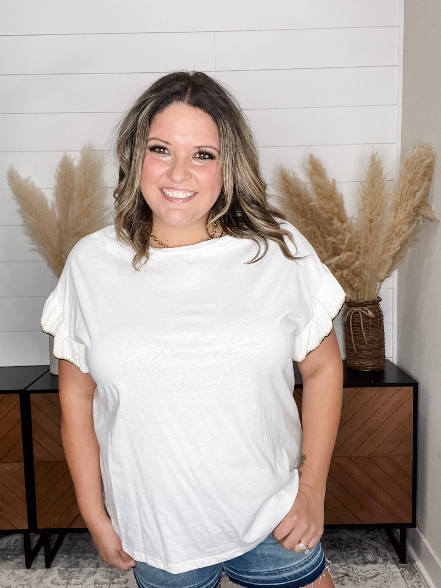 "Wonderment" Ruffle Sleeve Tee (Off White)