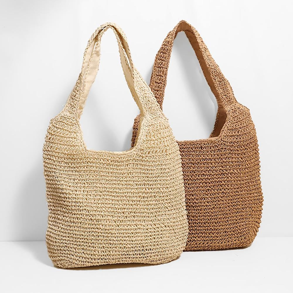 Woven Raffia Tote Bag (Brown & Cream)