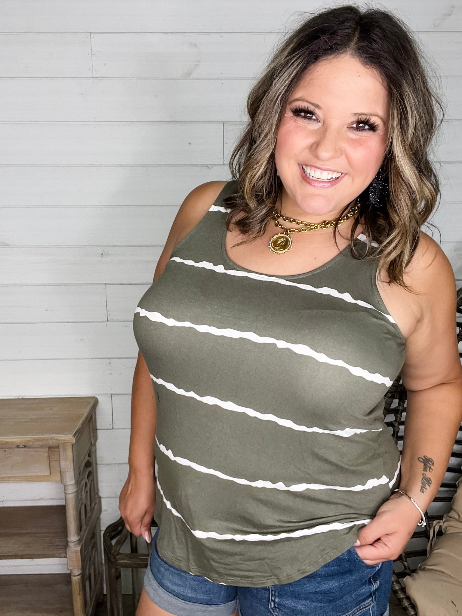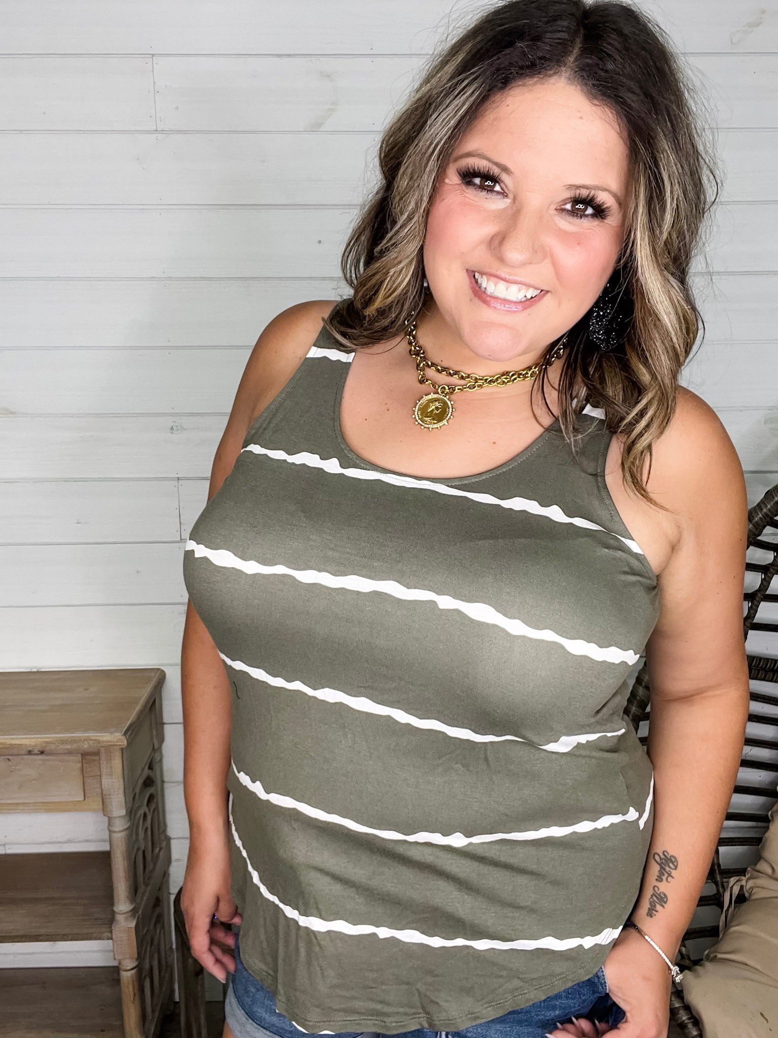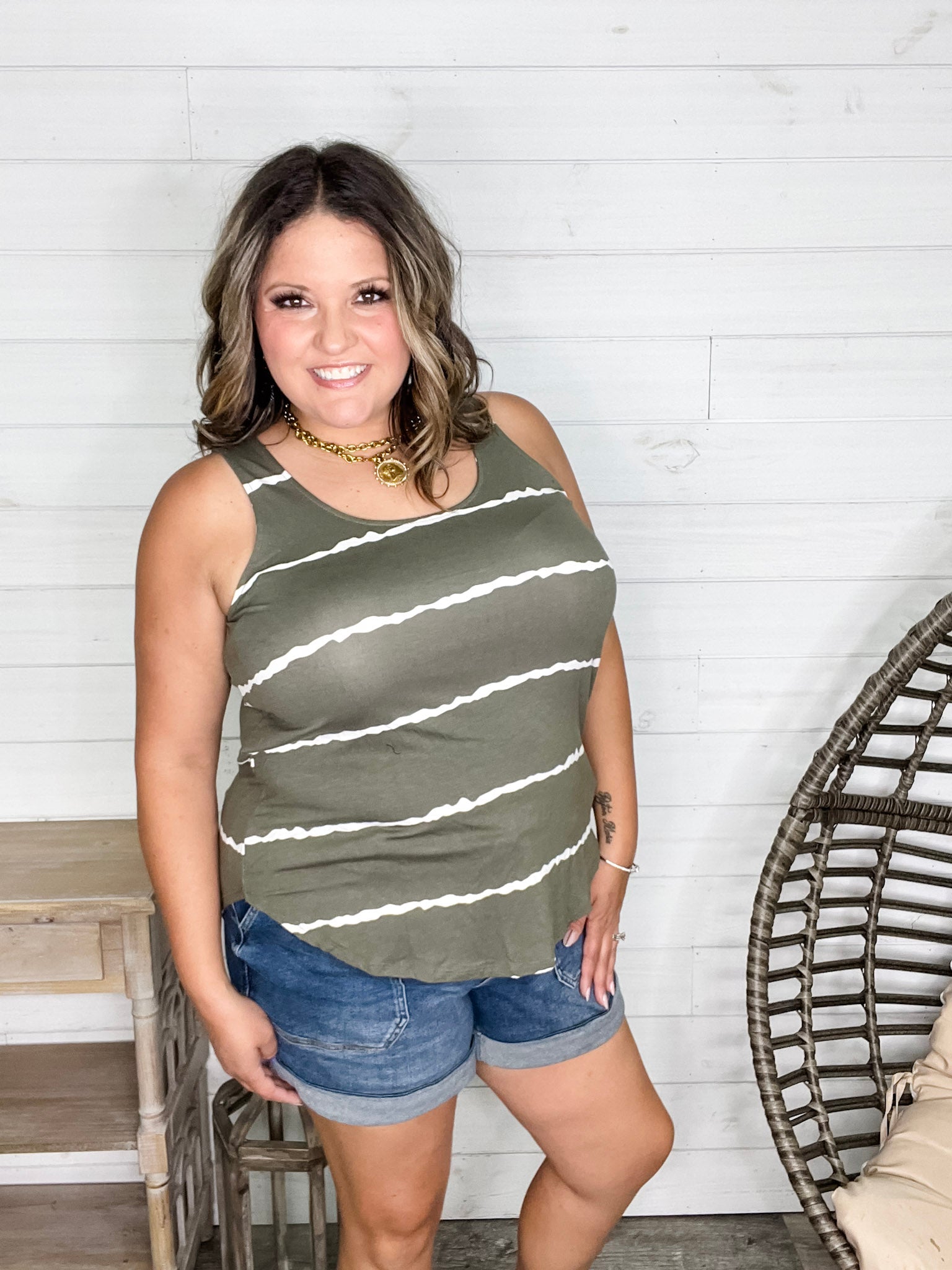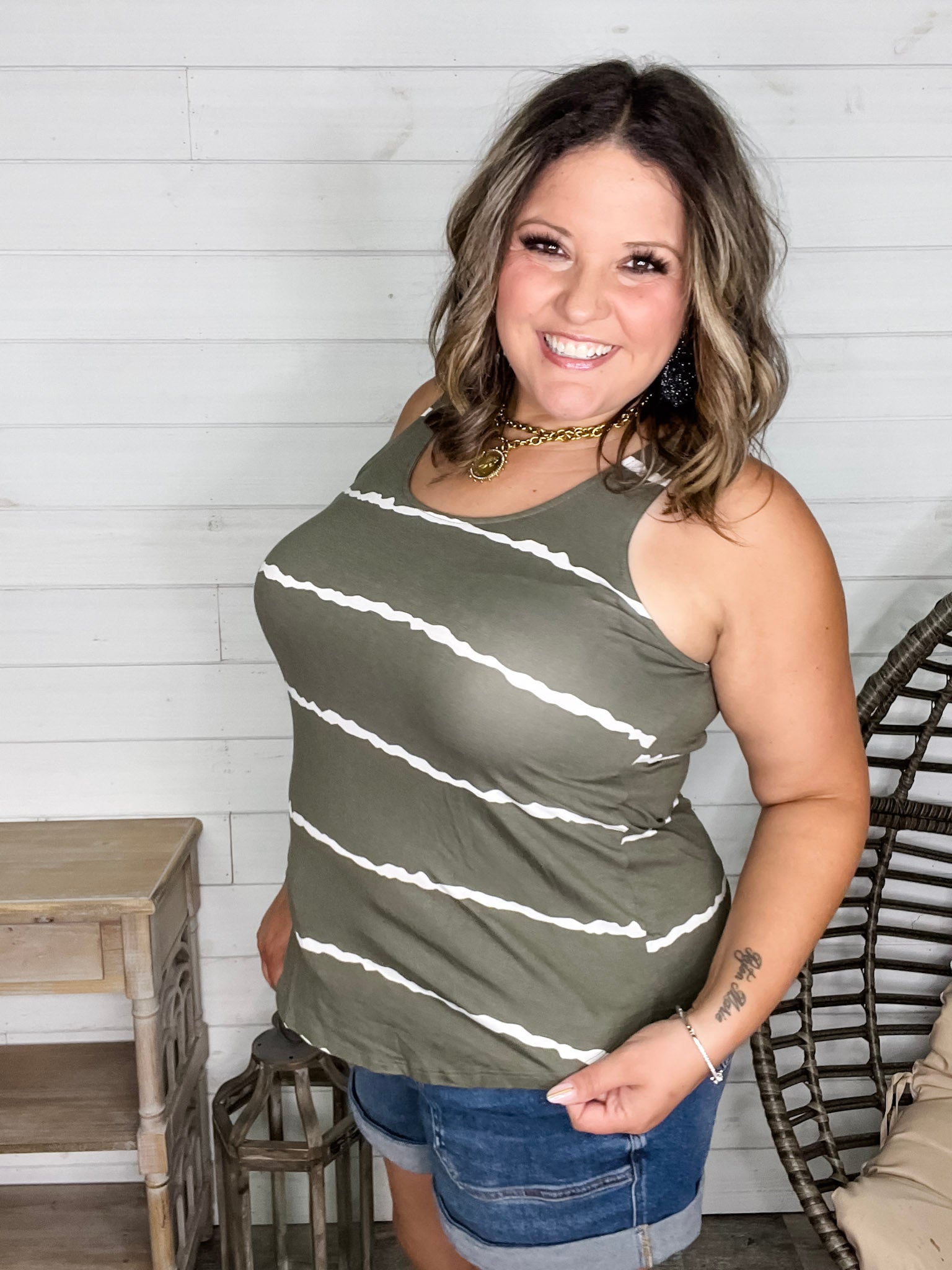Stay cool and comfy in the "Zigged Should Have Zagged" Relaxed Fit Tank, available in black and olive. This lightweight tank offers just the right amount of stretch for easy movement, making it perfect for laid-back days or casual outings. Designed to fit true to size, it’s your go-to top when you want to keep things effortlessly stylish with a playful twist.