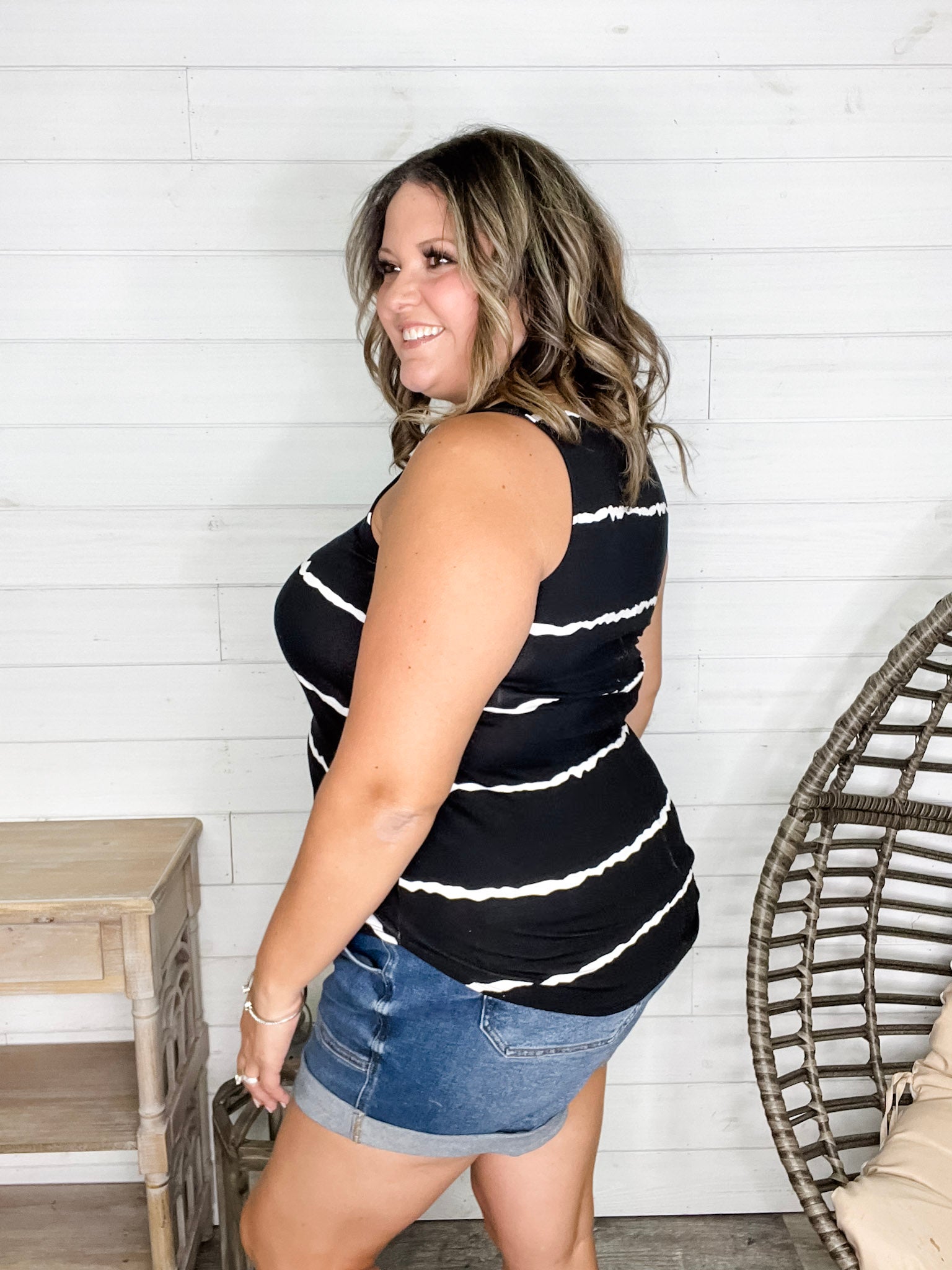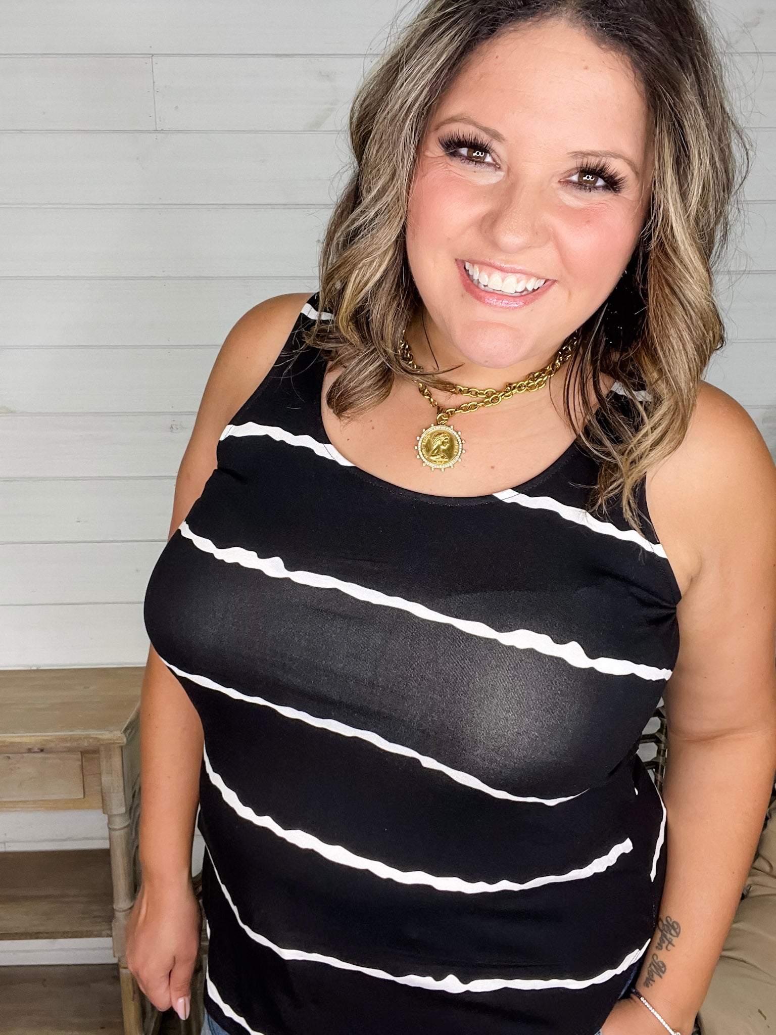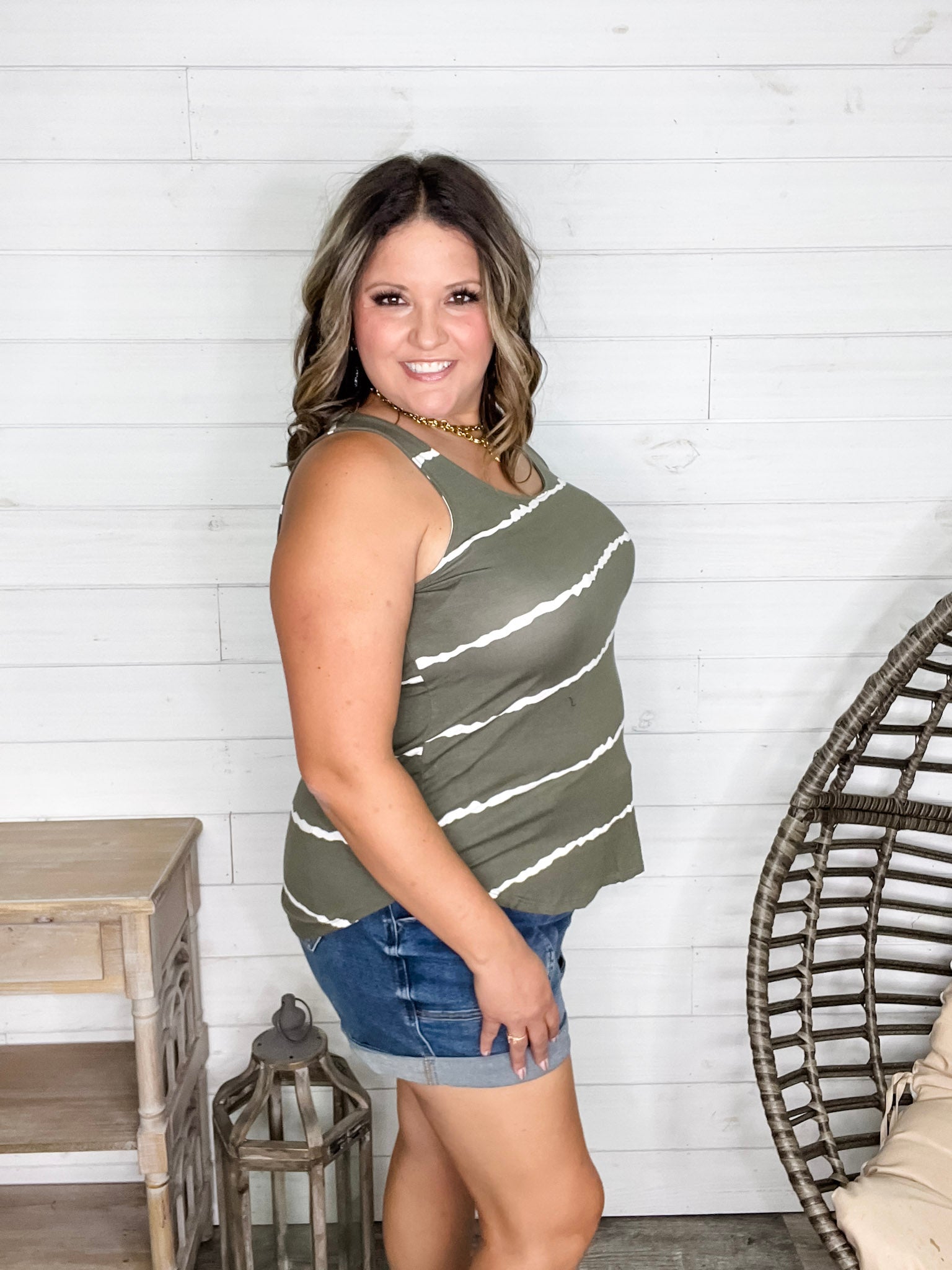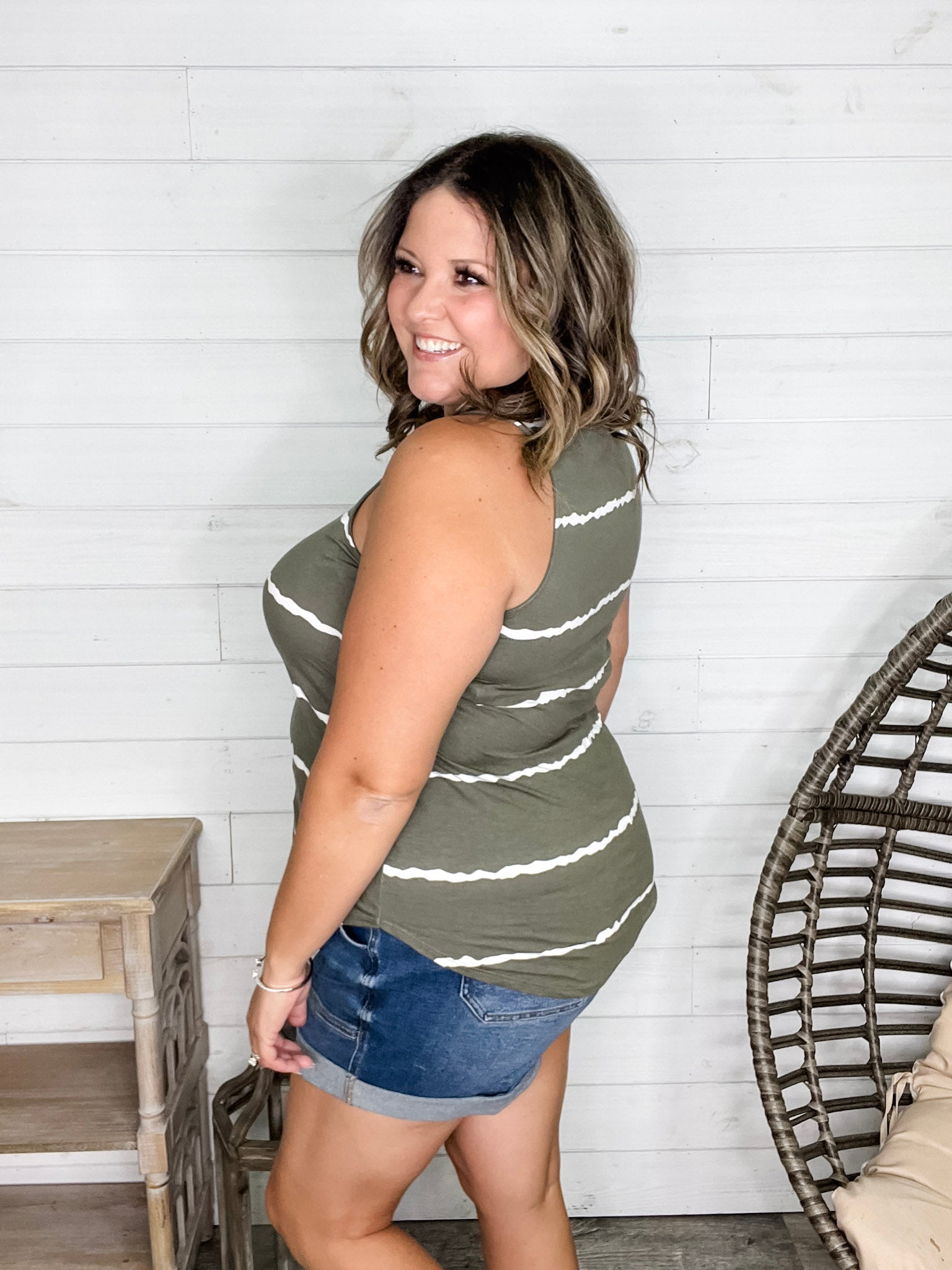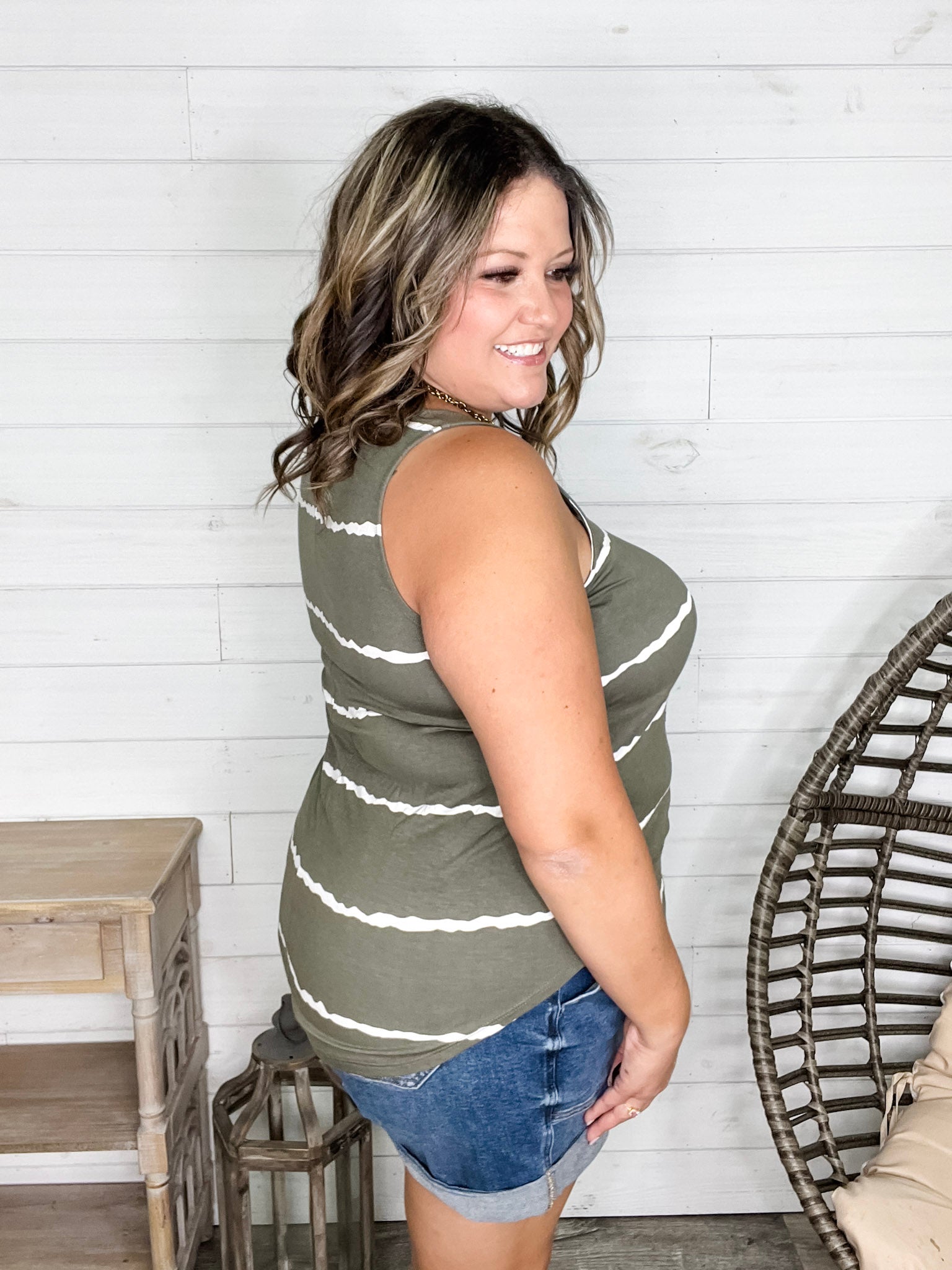 Stay cool and comfy in the "Zigged Should Have Zagged" Relaxed Fit Tank, available in black and olive. This lightweight tank offers just the right amount of stretch for easy movement, making it perfect for laid-back days or casual outings. Designed to fit true to size, it’s your go-to top when you want to keep things effortlessly stylish with a playful twist.
