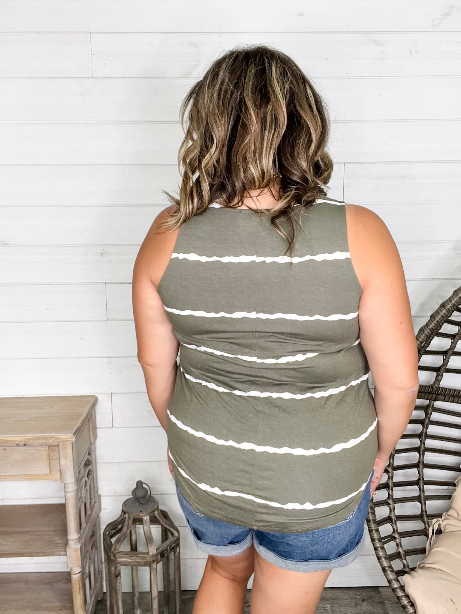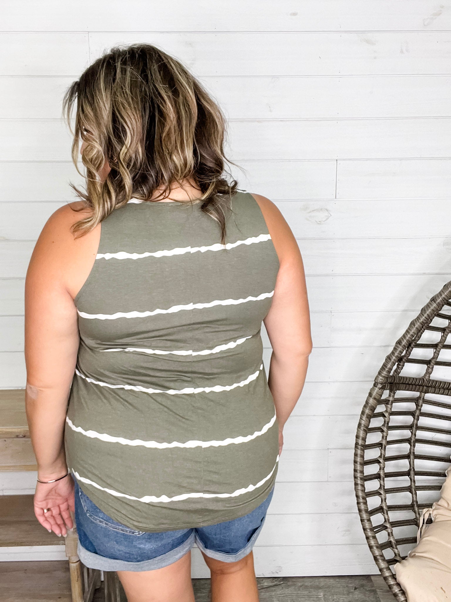 "Zigged Should Have Zagged" Relaxed Fit Tank (Black & Olive)